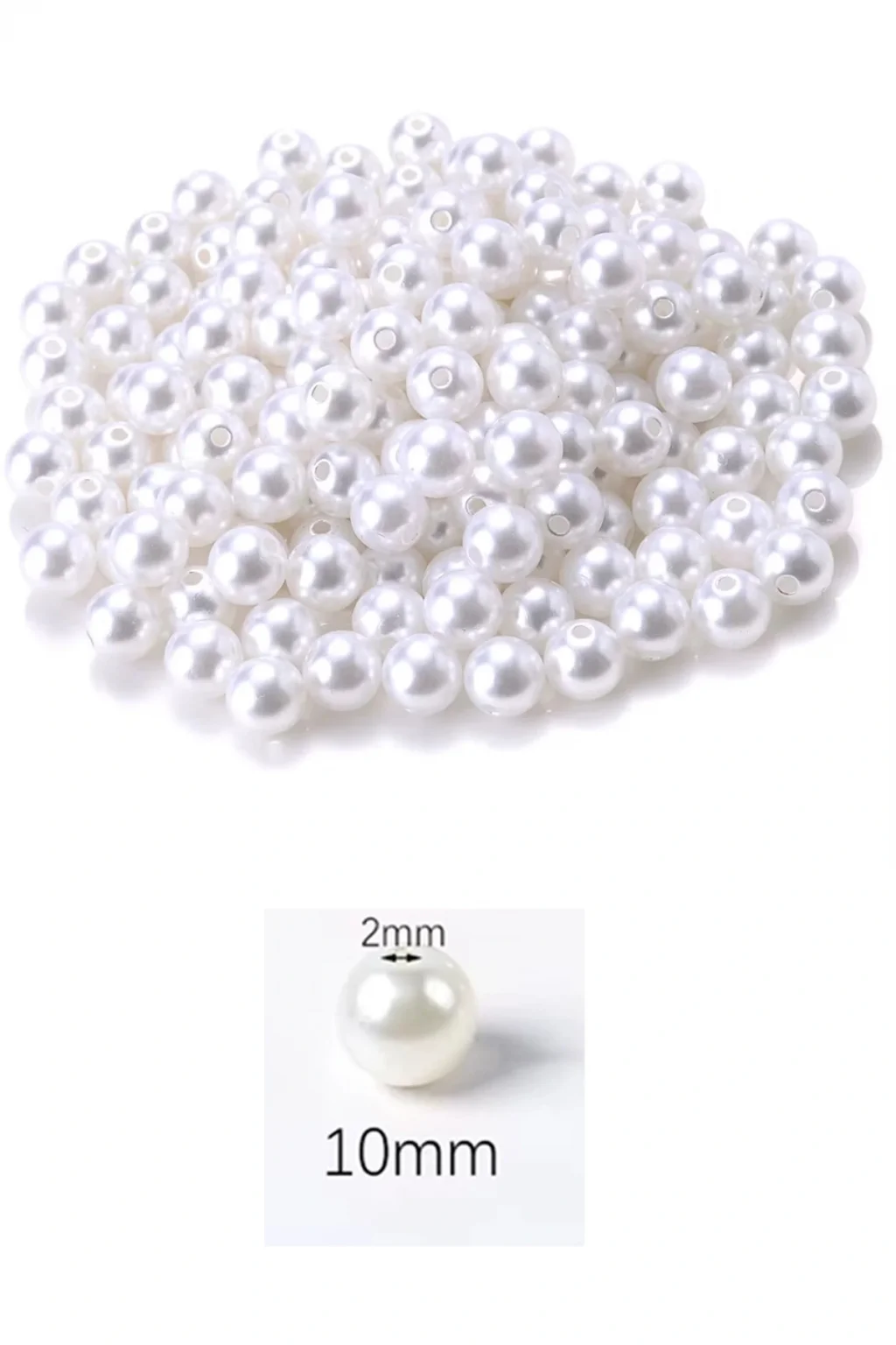 | 1.000 gram (1 kg.) 10mm Beyaz Renk Plastik İnci Boncuk Çanta ve Takı Yapım Boncuğu (~1.900 adet) |