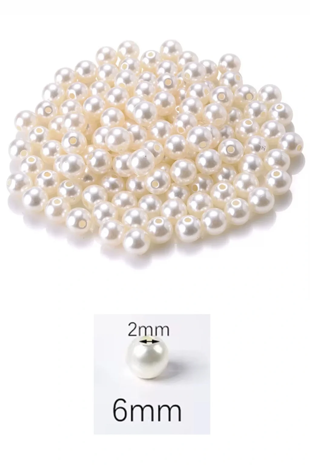 | 1.000 gram (1 kg.) 6mm Krem Renk Plastik İnci Boncuk Çanta ve Takı Yapım Boncuğu (~7.500 adet) |