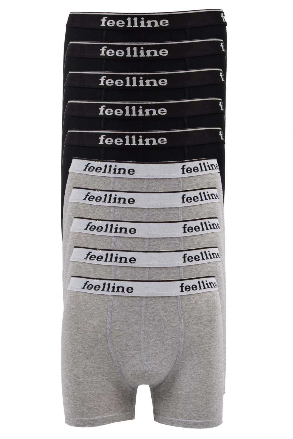 • 10 adet Feelline Siyah ve Gri Pamuklu Doğal Likralı Erkek Boxer