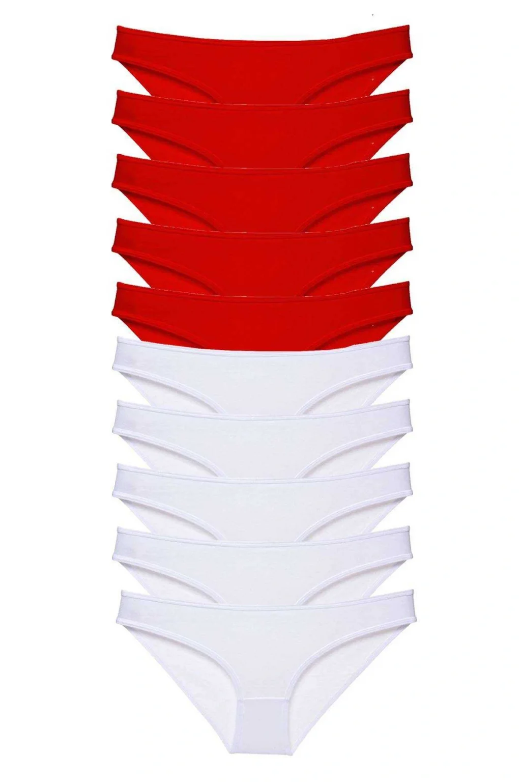 10 adet Süper Eko Set Likralı Kadın Slip Külot Kırmızı Beyaz