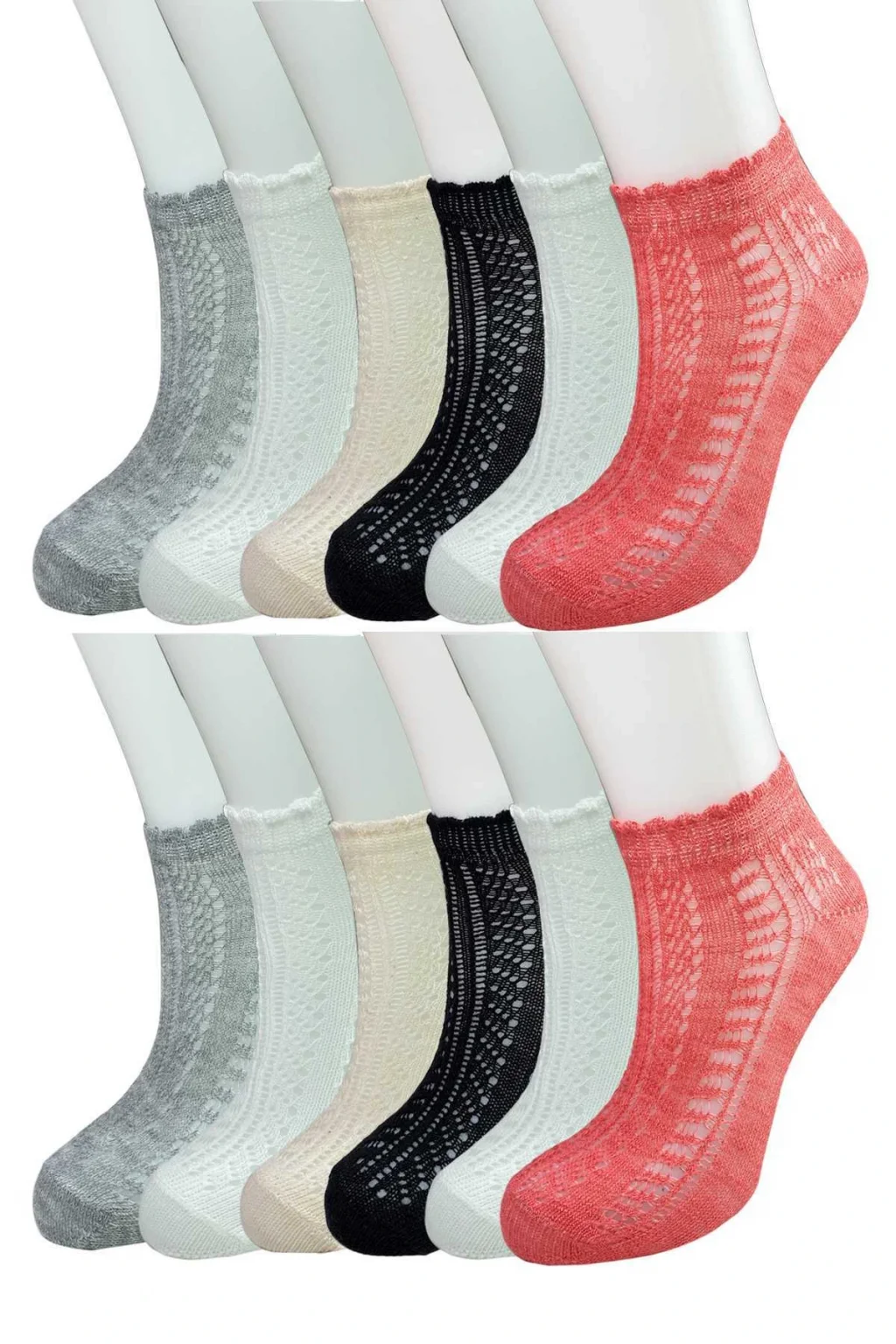 | 12 Adet Örgü İşlemeli Kadın Fantezi Bilek Çorap Pastel renkleri ve özel dokusu ile ayağınıza şıklık ve rahatlık sağlar. Yıkamalı ve parfümlüdür. Örgü işleme delikleri geniştir ve ayak üst tarafı fileli transparan görüntü sağlar. Günlük hayatta ayakkabı ile veya ev iç giyim olarak kullanılabilir. 36-40 numaraya kadar uyumludur. Pamuklu ipten üretilmiştir. Paket İçeriği; 12 Adet Örgü İşlemeli Kadın Fantezi Bilek Çorap |