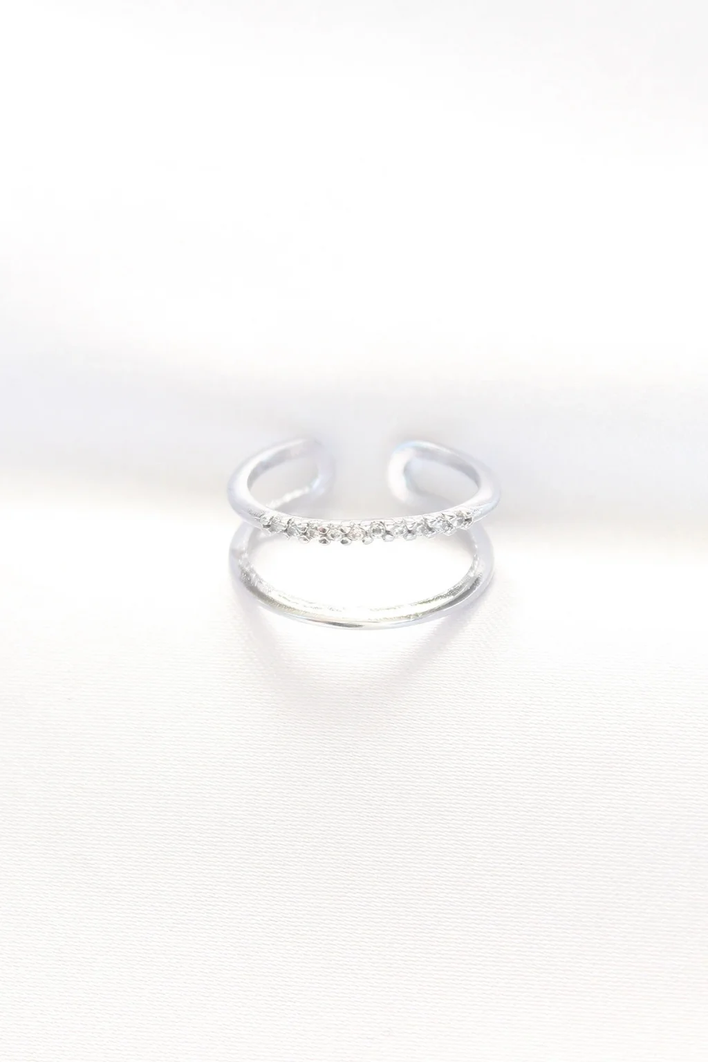 2li Görünümlü Su Yolu Tasarımlı Silver Renk Ayarlanabilir Yüzük