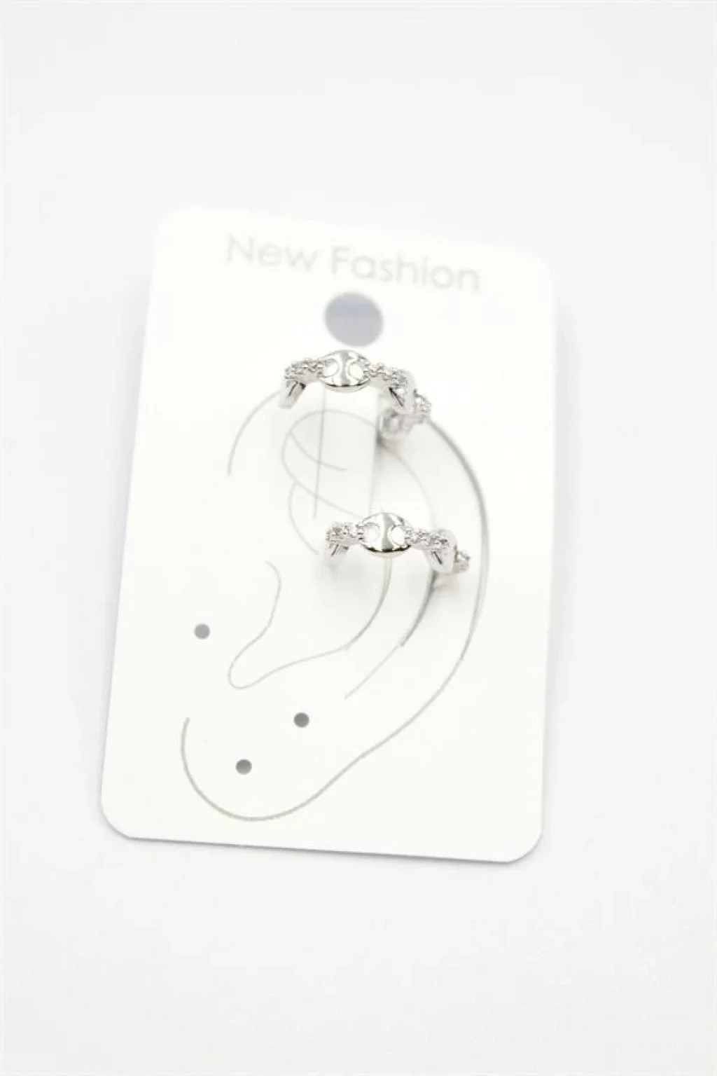 2'li Taşlı Kıkırdak Küpe - Gümüş