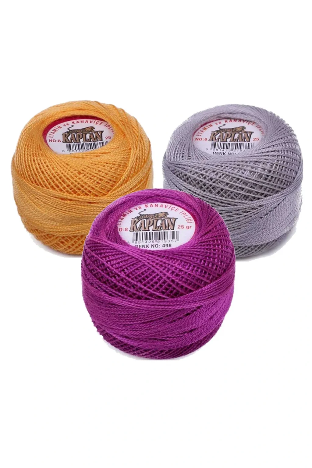 | 3 Adet Kaplan Etamin Ve Kanaviçe İpi 8 No Kod/Renk: 444 - 316 - 498 - Ryl |