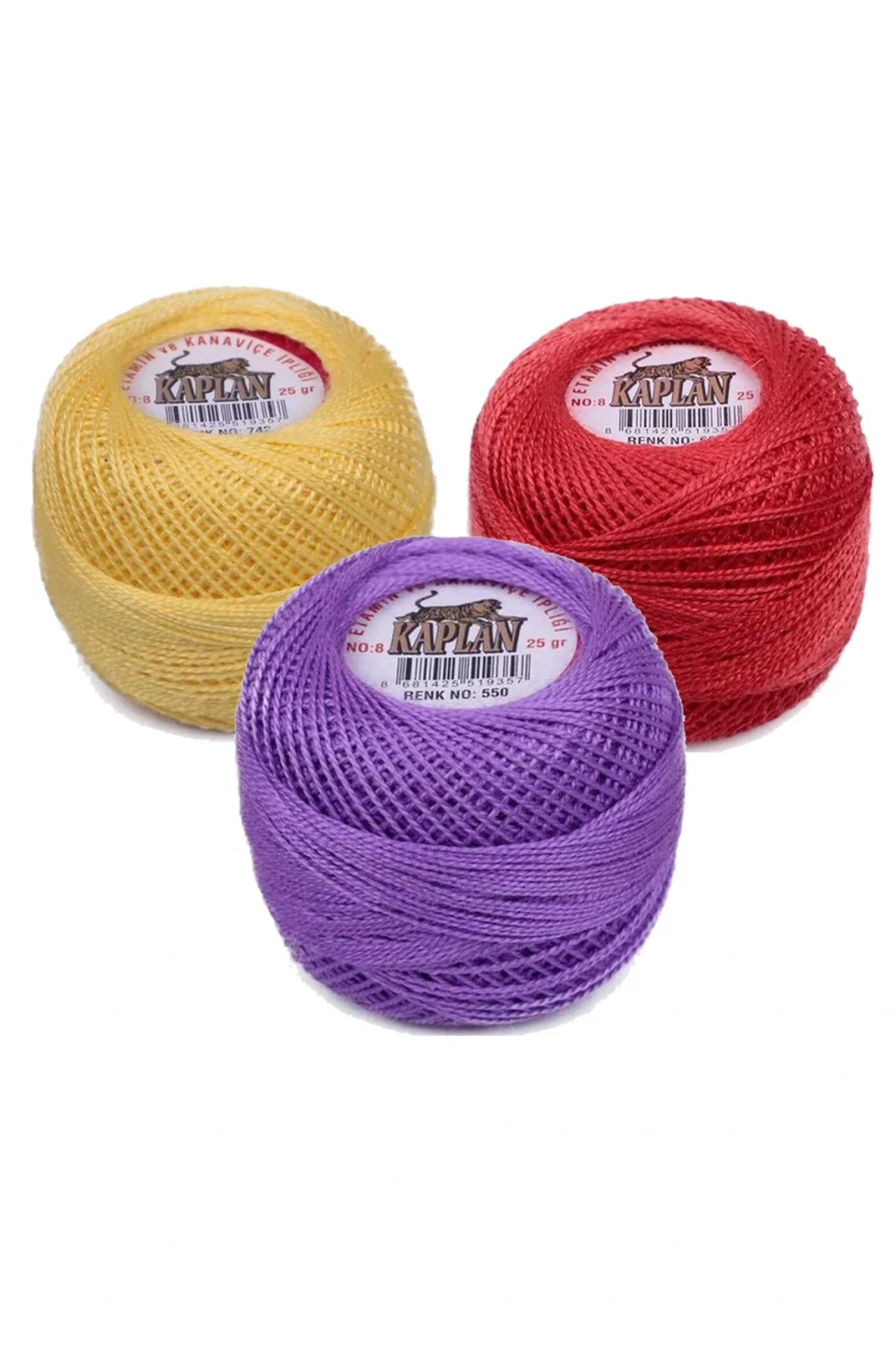 | 3 Adet Kaplan Etamin Ve Kanaviçe İpi 8 No Kod/Renk: 742 - 666 - 550 - Ryl |