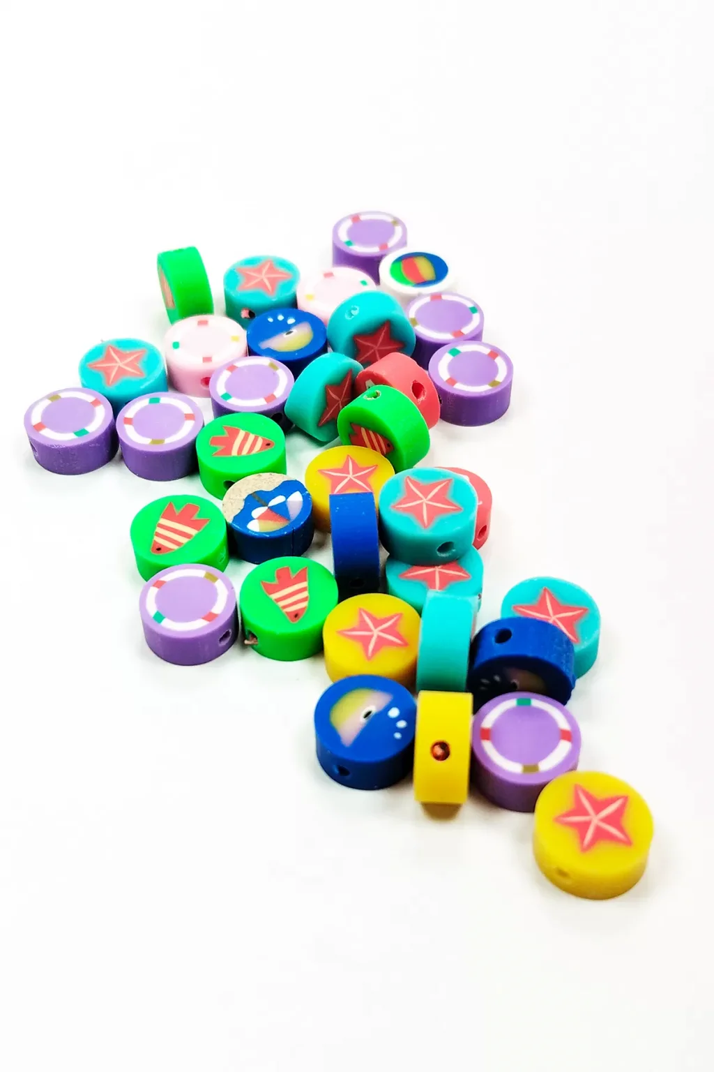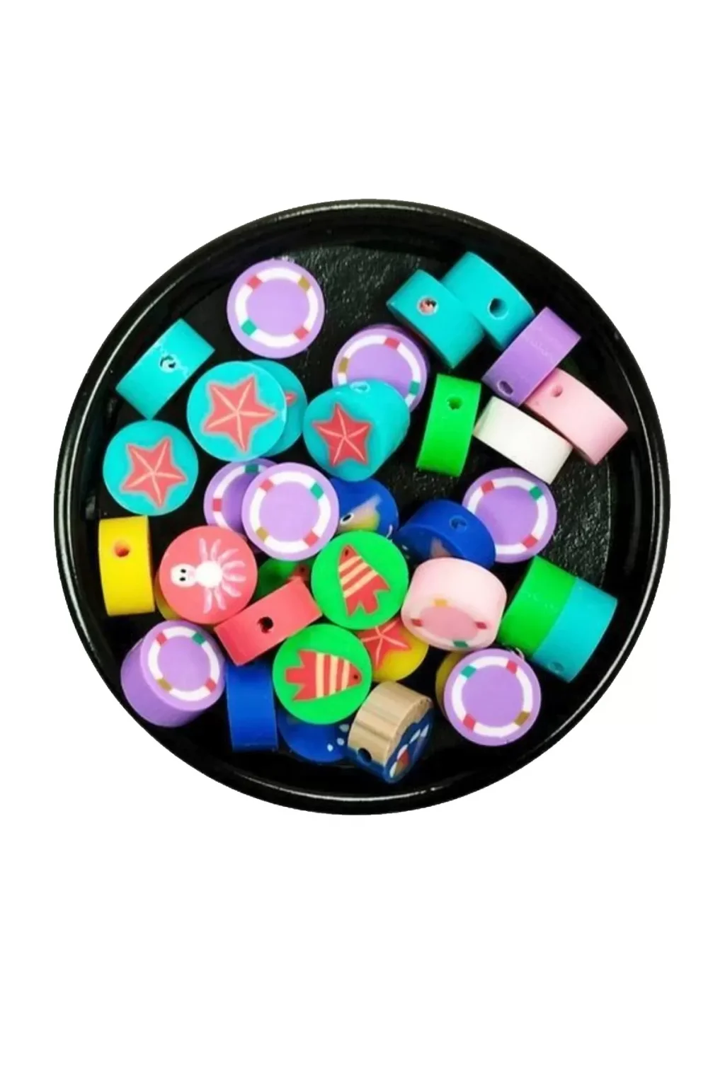 30 Adet 10 mm Polimer Kil Fimo Boncuk Takı Bileklik + 1 Metre Lastikli Misina Hediye - Deniz Teması