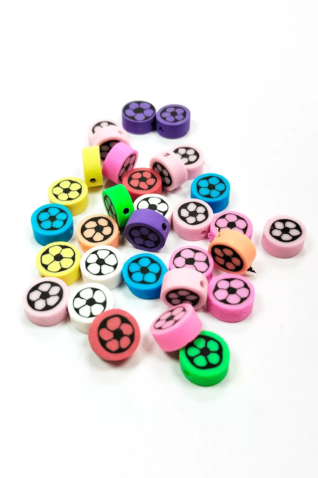 • 30 Adet 10 mm Polimer Kil Fimo Boncuk Takı Bileklik + 1 Metre Lastikli Misina Hediye - Renkli Çiçek
