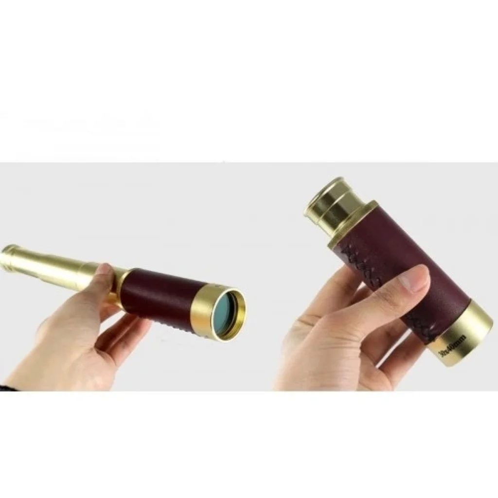 30x40 Panda Büyük Mercekli Pirinç Gövdeli Deri Çantalı Denizcilik Korsan Dürbün
