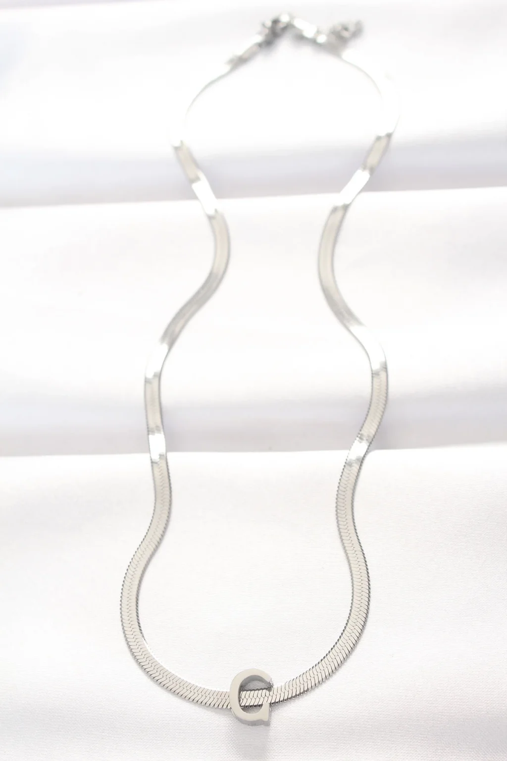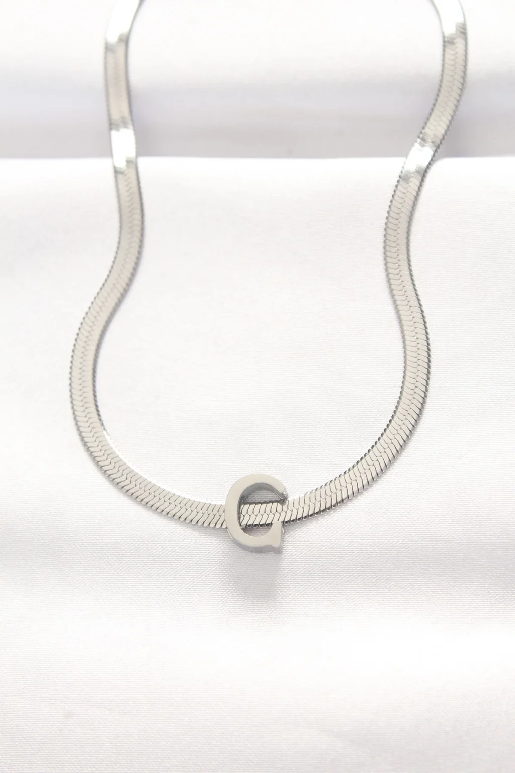 316L Çelik C Harfli Silver Renk İtalyan Zincirli Kolye