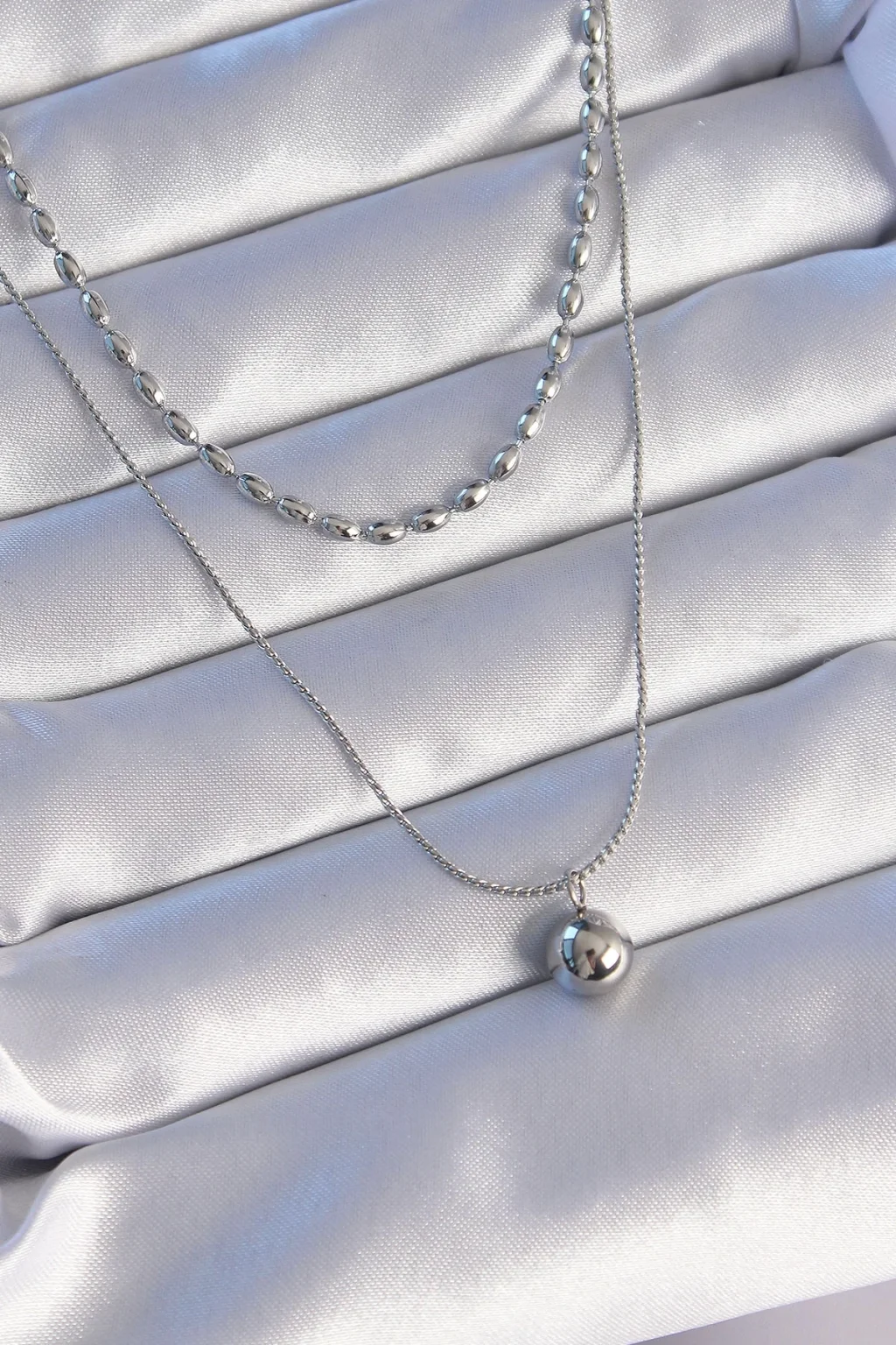 316L Çelik Çift Zincirli Gümüş Renk Topçuk Model Kolye