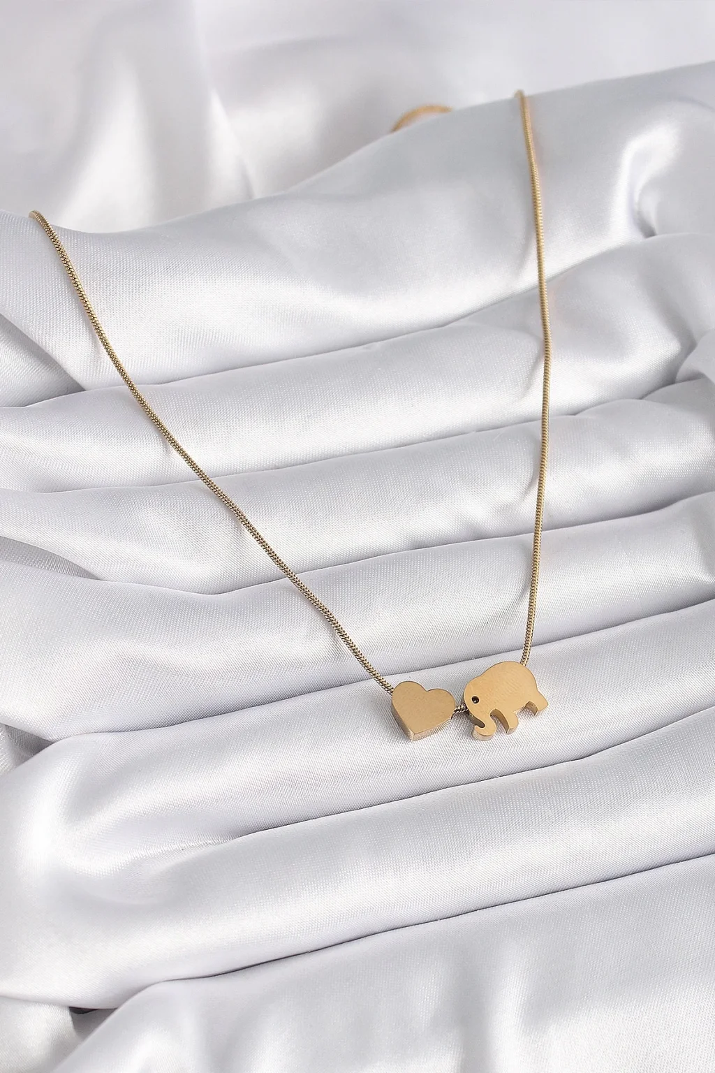 316L Çelik Gold Renk Fil Kalp Figürlü Kadın Kolye
