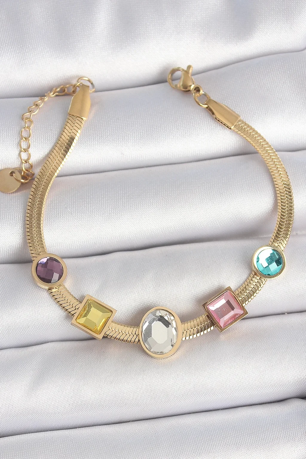316L Çelik Gold Renk İtalyan Zincir Renkli Zirkon Taşlı Kadın Bileklik