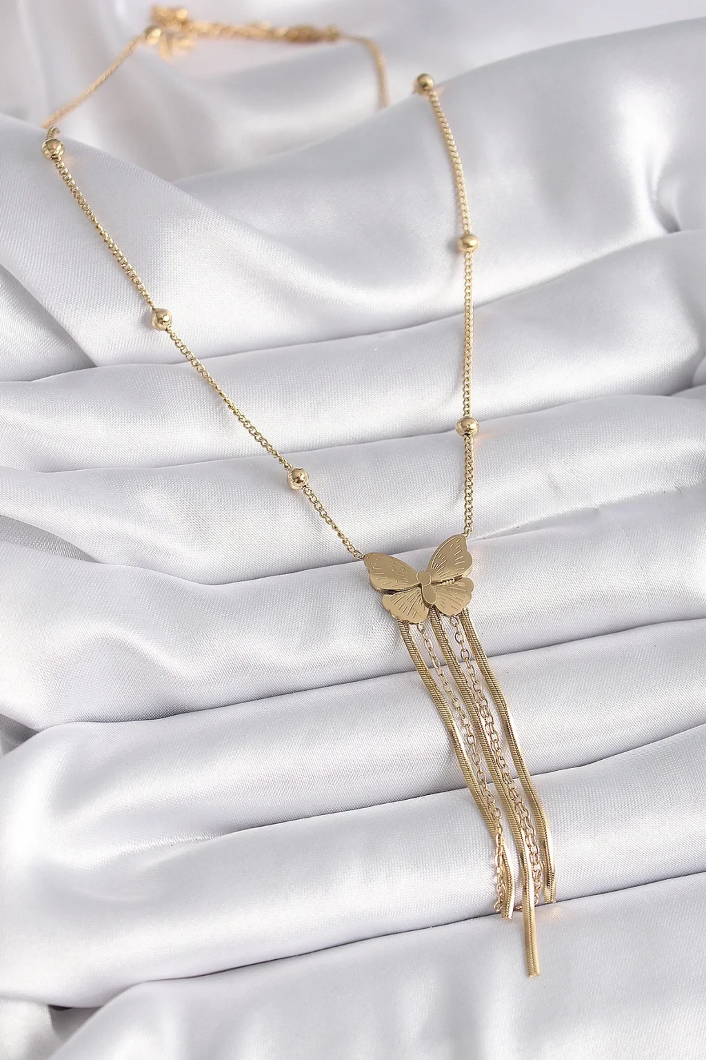316L Çelik Gold Renk Kelebek Figür Sallantı İtalyan Zincirli Kadın Kolye