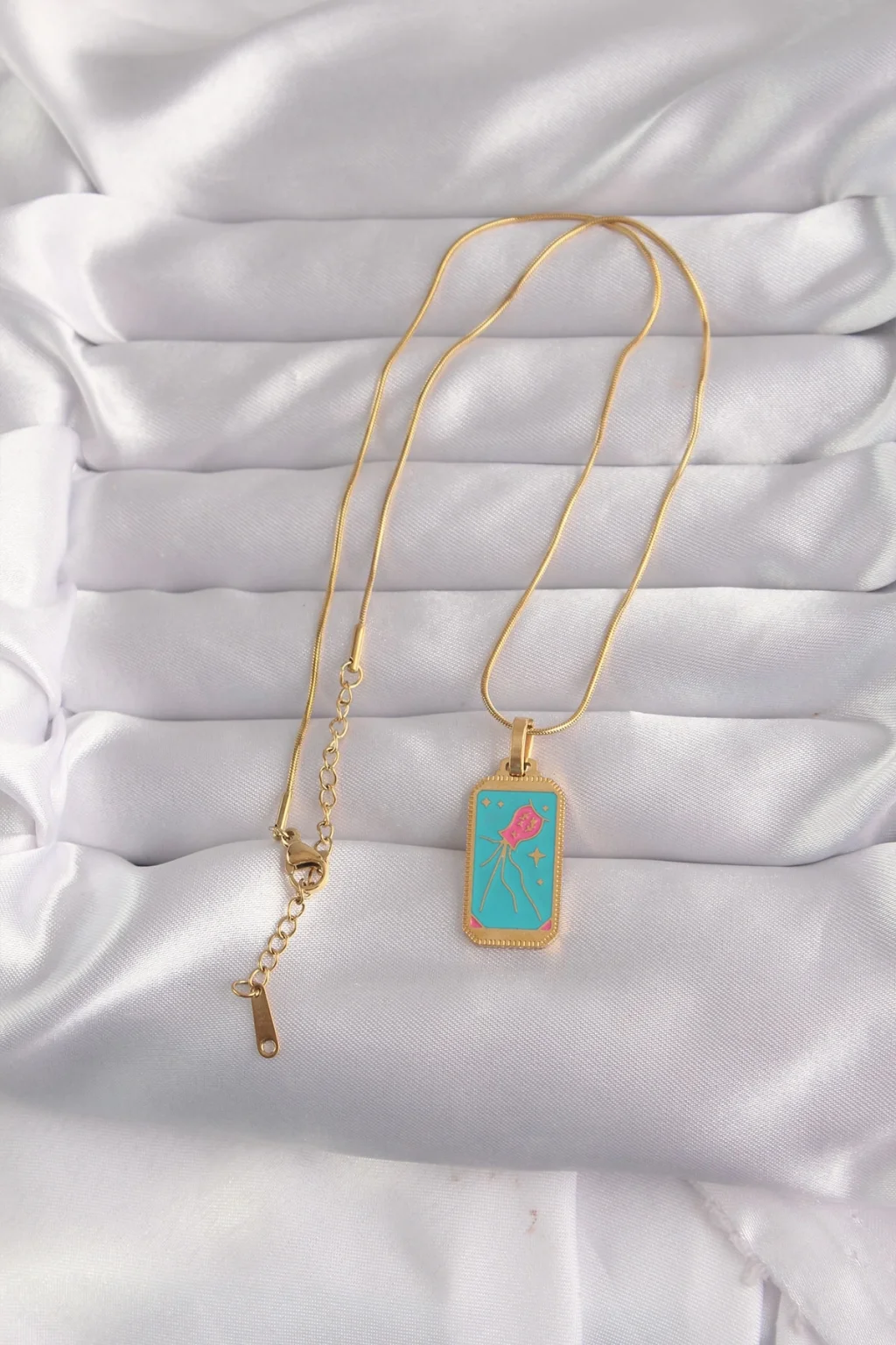 316L Çelik Gold Renk Mavi Mineli Tarot Kolye