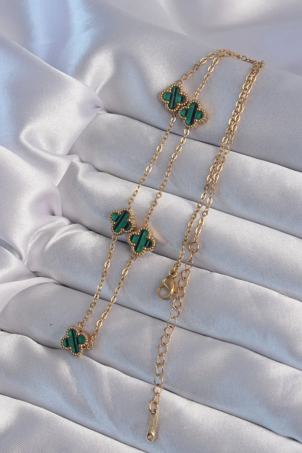 316L Çelik Gold Renk Minimal Yeşil Mineli Yonca Kolye
