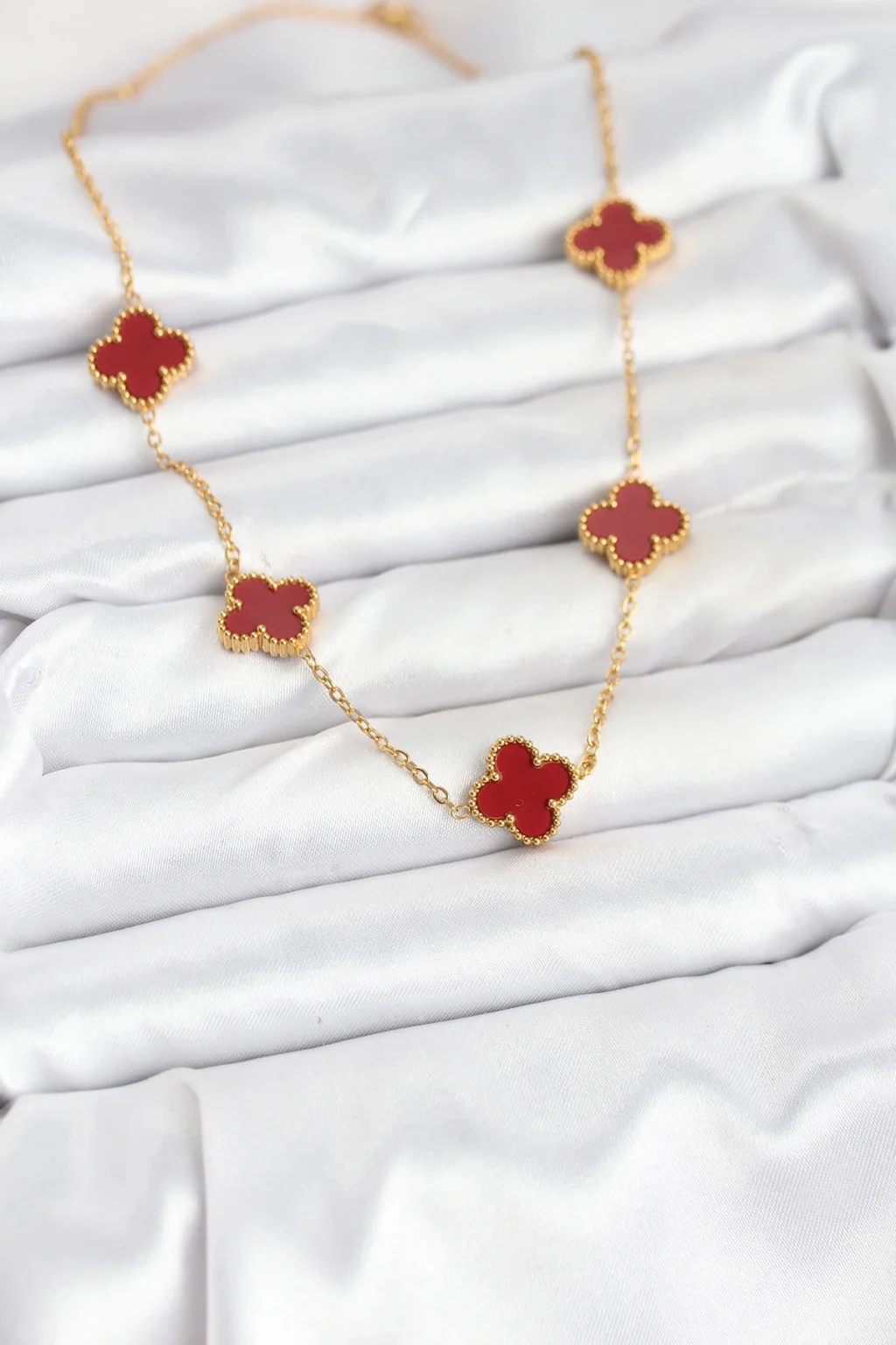 316L Çelik Gold Renk Zincir Bordo Yonca Kadın Kolye
