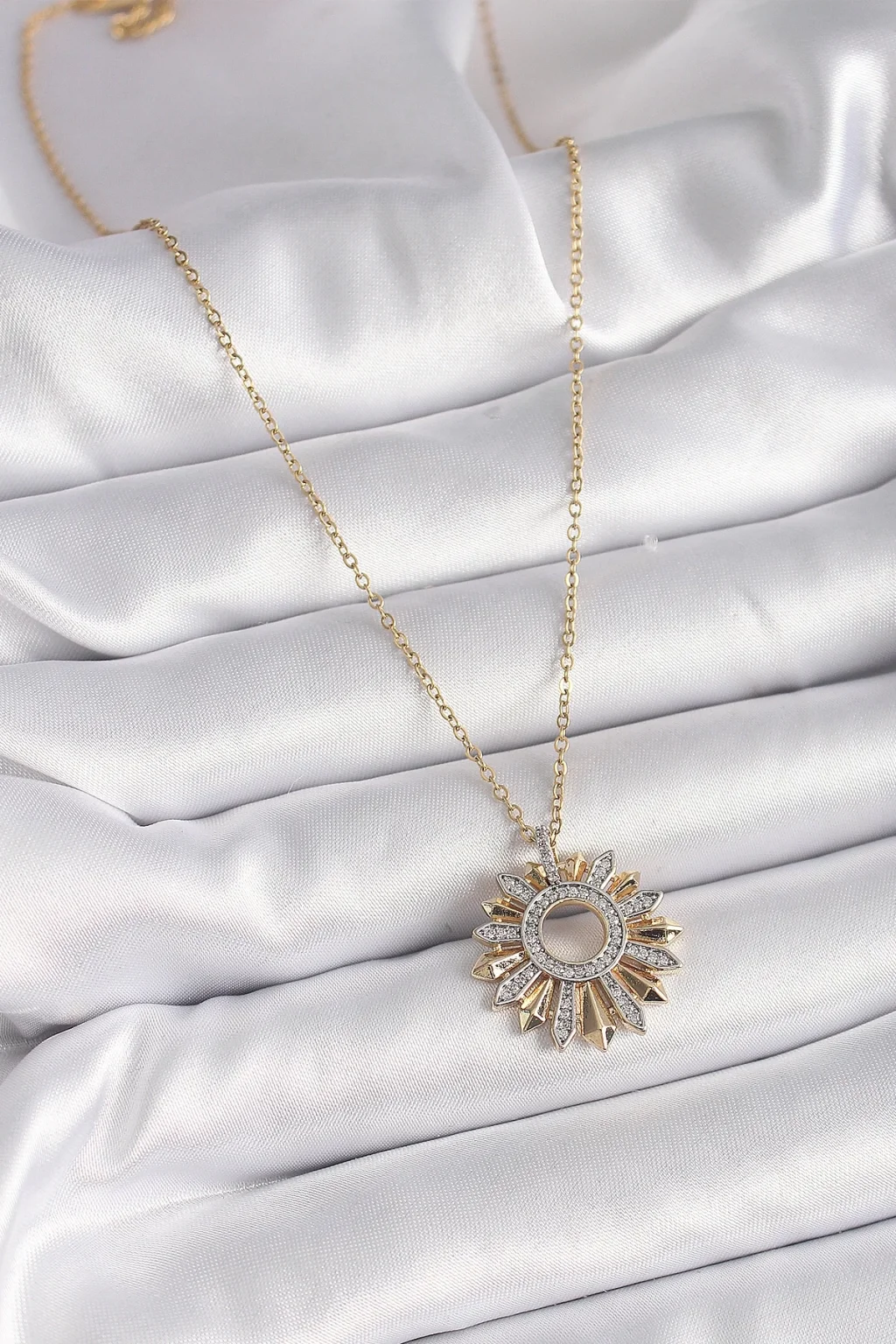 316L Çelik Gold Renk Zincir Zirkon Taşlı Mix Renk Güneş Model Kadın Kolye