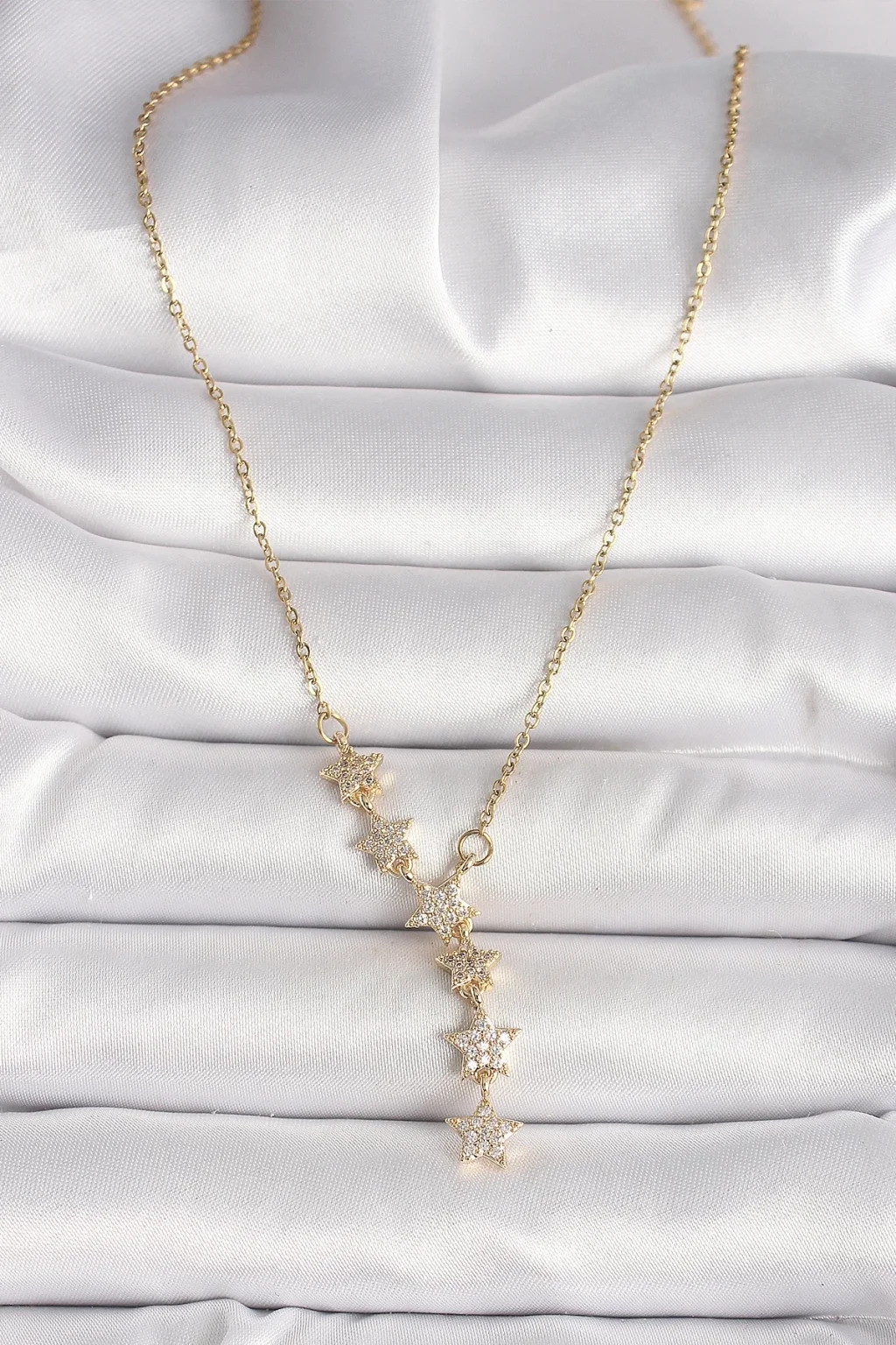 316L Çelik Gold Renk Zincir Zirkon Taşlı Yıldız Model Kadın Kolye