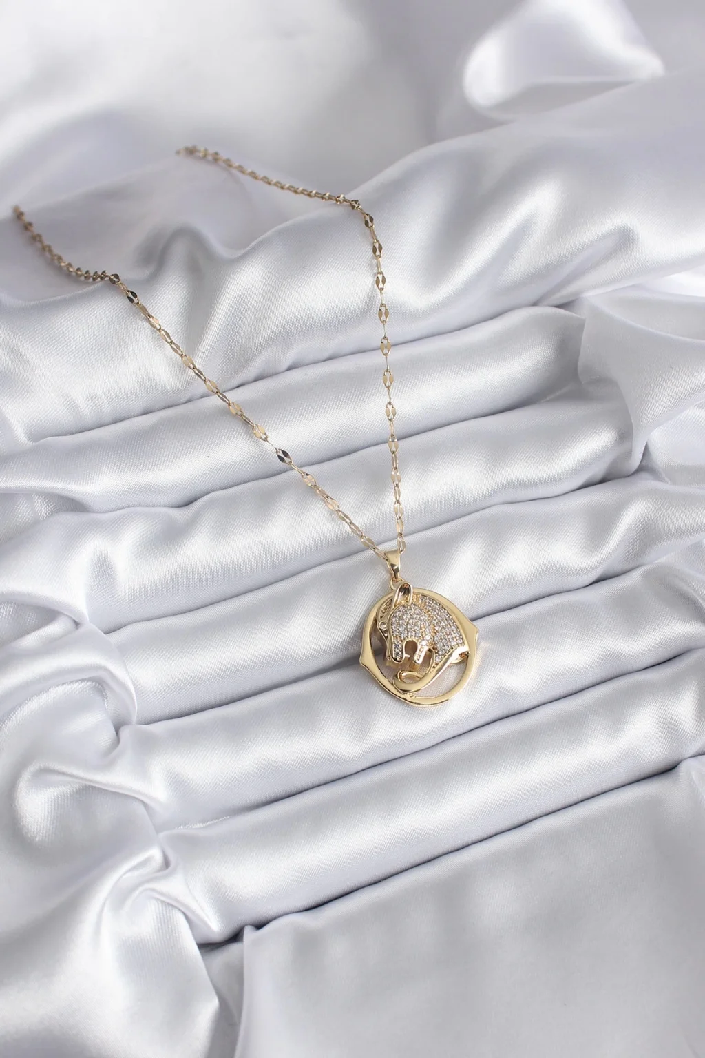 316L Çelik Gold Renk Zirkon Taşlı Jaguar Model Kadın Kolye