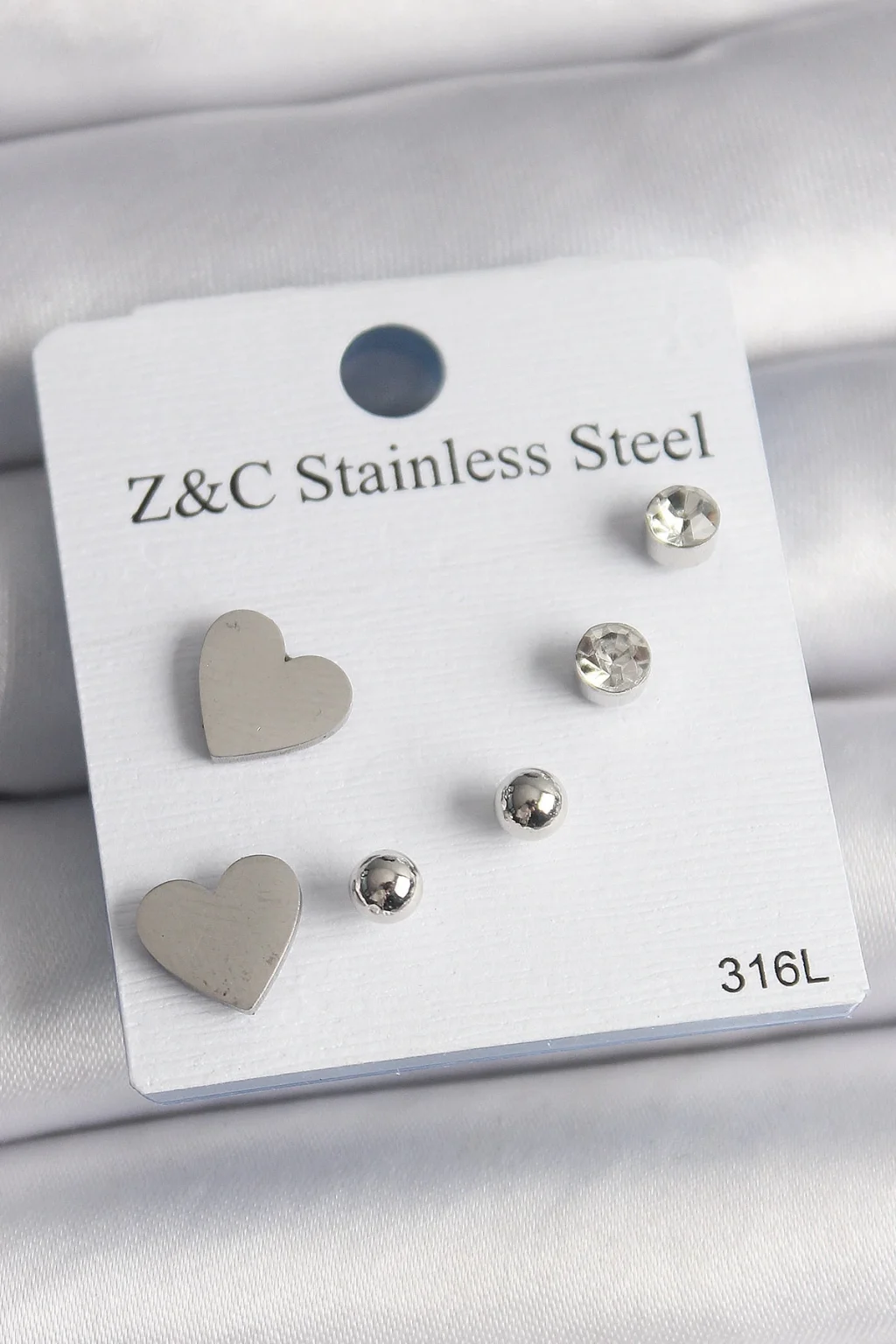 316L Çelik Gold Renk Zirkon Taşlı Kalpli Kadın Küpe Seti