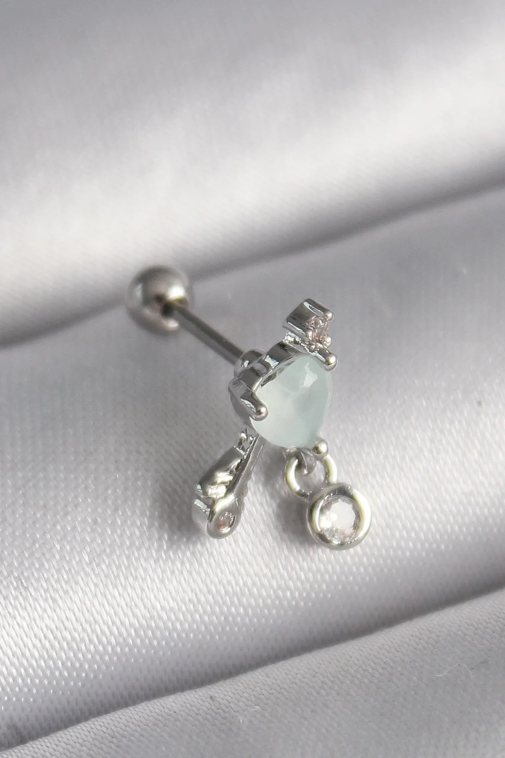 316L Çelik Gümüş Renk Beyaz Minelik Kalp Sallantı Zirkon Taş Detay Tragus Piercing
