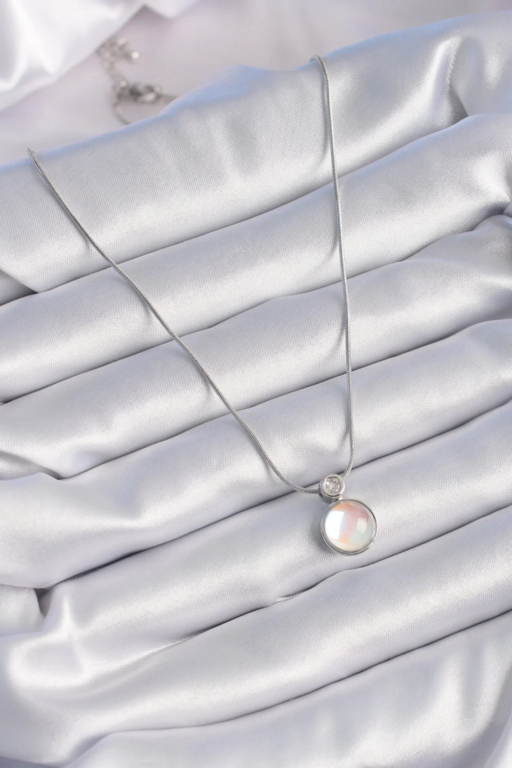 316L Çelik Gümüş Renk Beyaz Sedefli Vintage Model Kadın Kolye