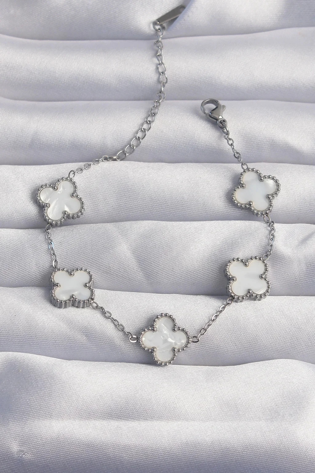 316L Çelik Gümüş Renk Beyaz Sedefli Yonca Bileklik
