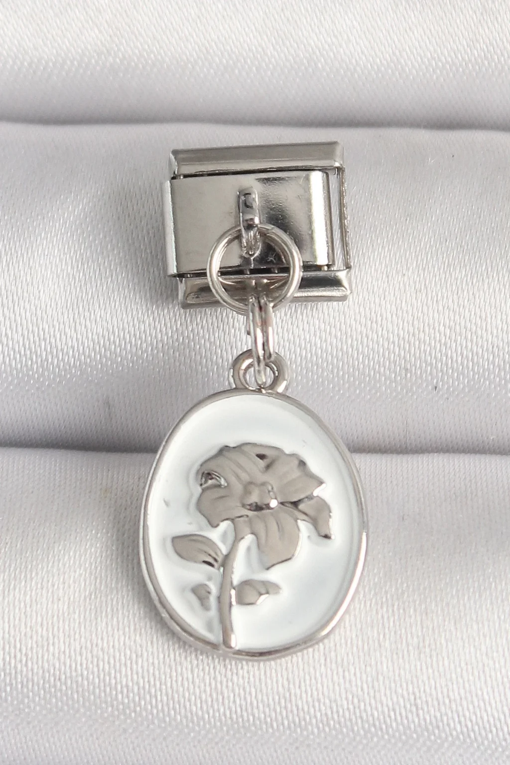316L Çelik Gümüş Renk Çiçek İşlemeli Beyaz Portre Model Nomination Charm