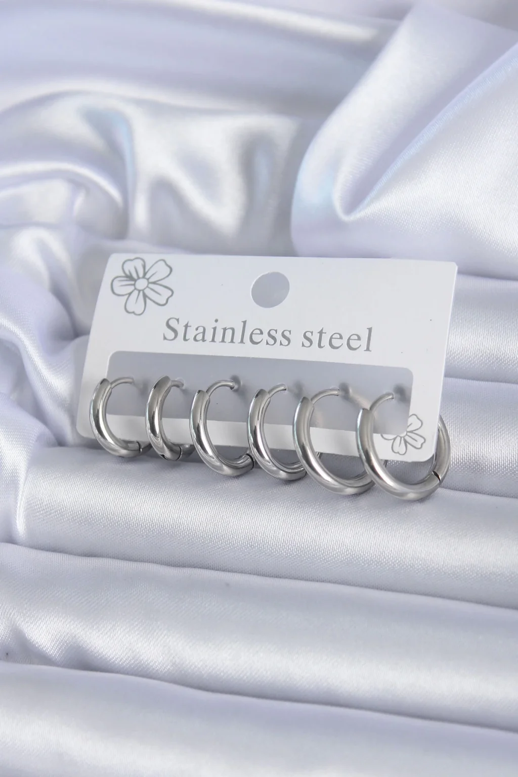 316L Çelik Gümüş Renk Halka Kadın Küpe Seti