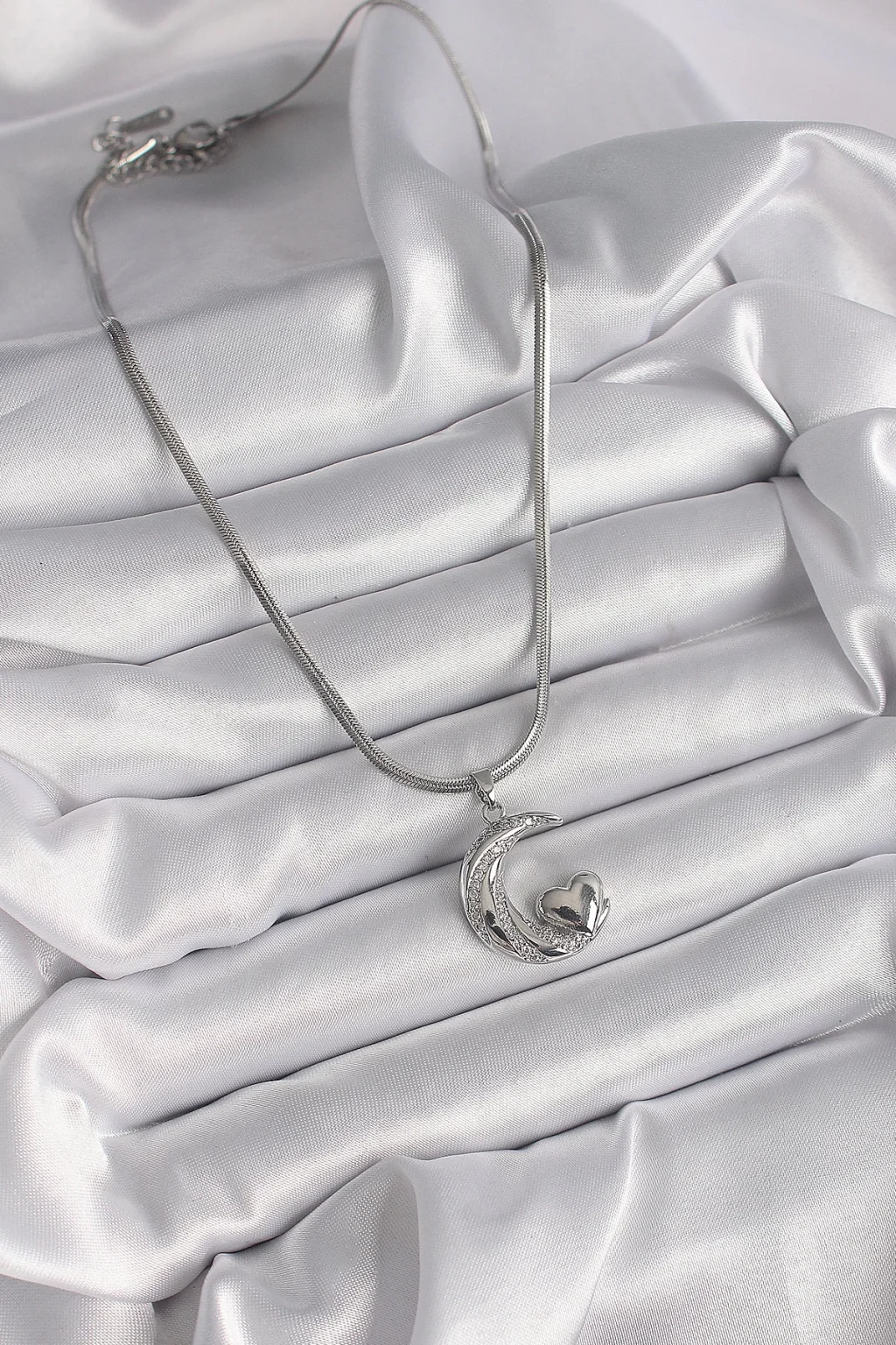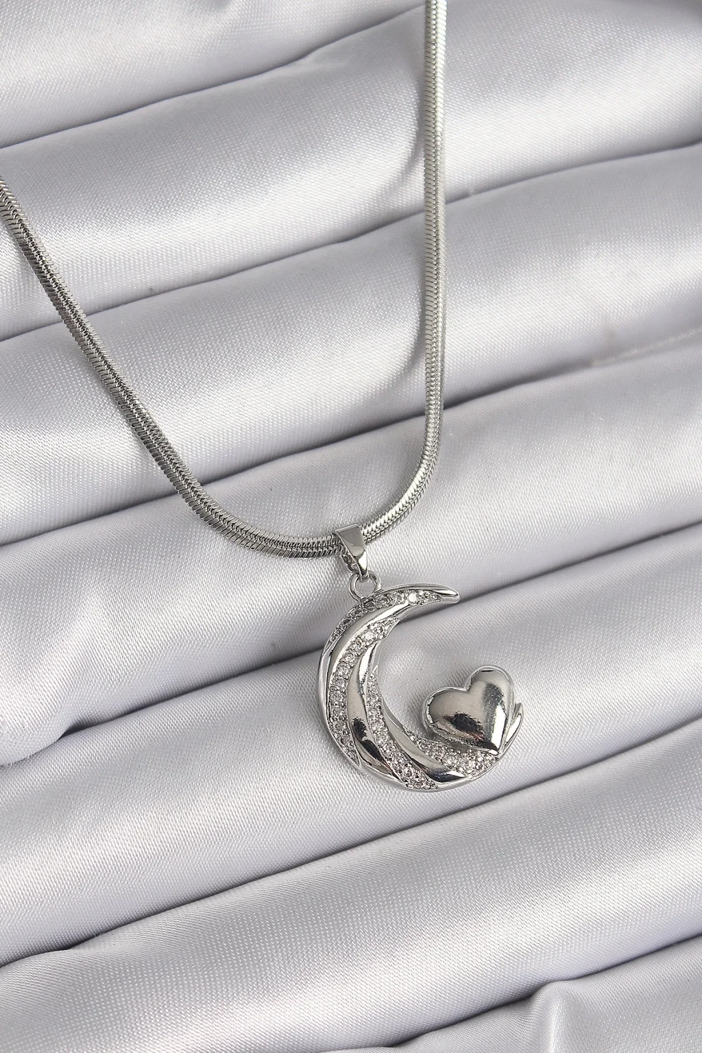 316L Çelik Gümüş Renk İtalyan Zincir Zirkon Taşlı Halil Figür Kalp Detay Kadın Kolye