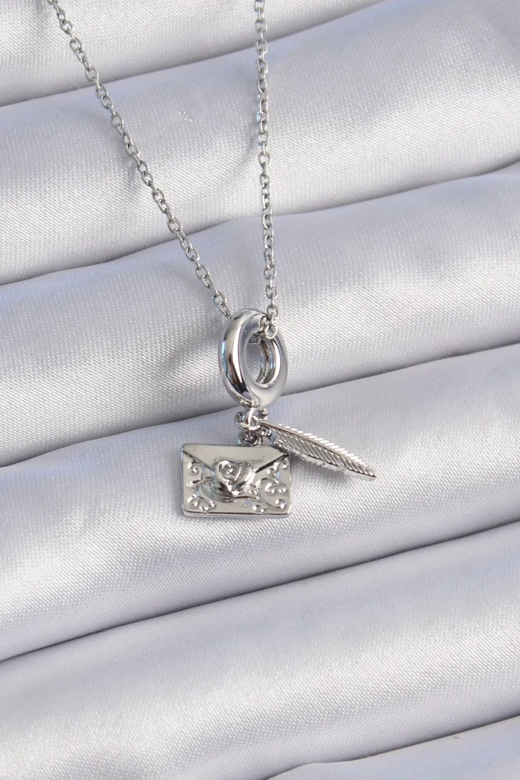 316L Çelik Gümüş Renk Kalp Detay Mektup Figür Charm Model Kadın Kolye