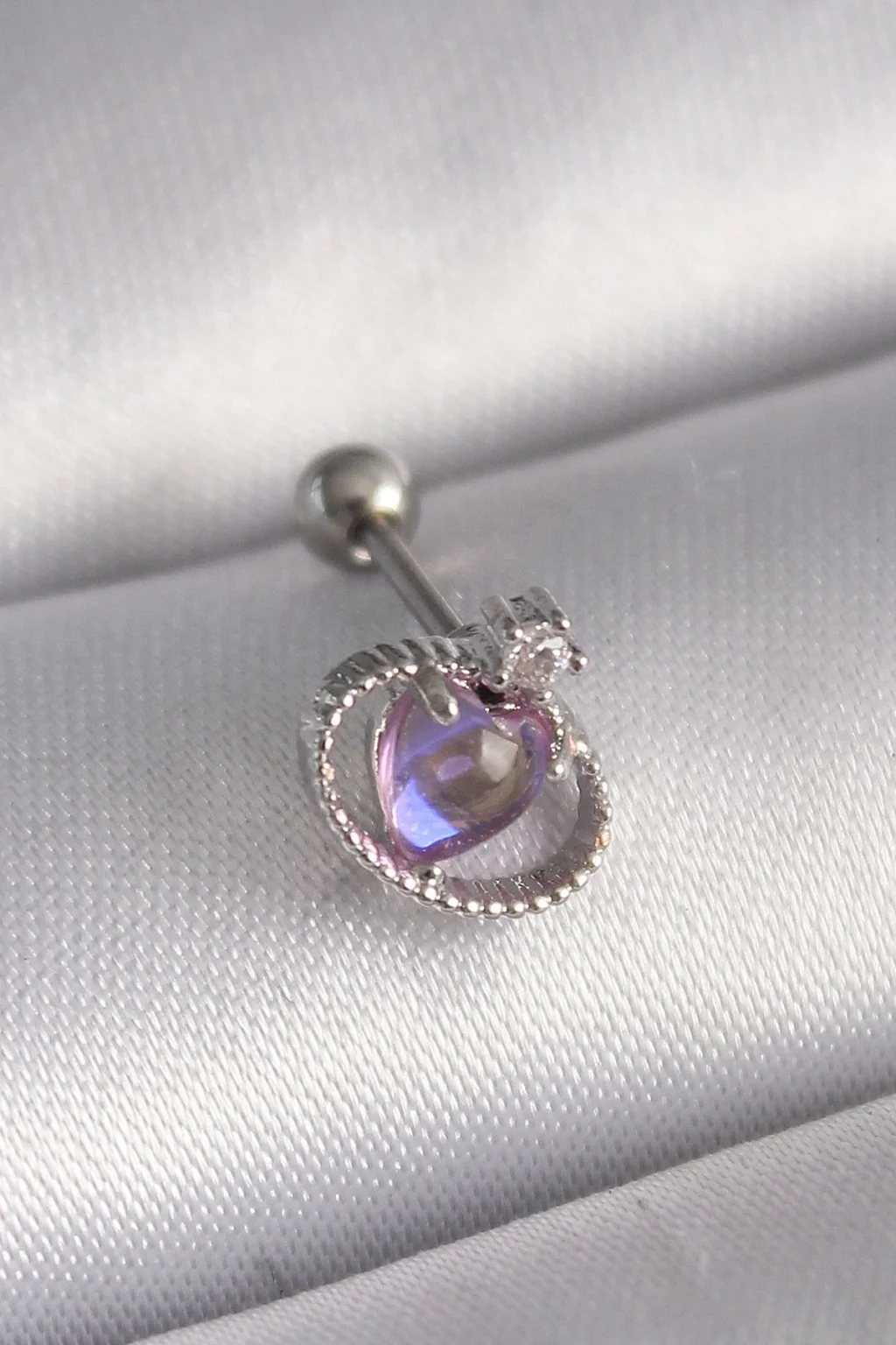 316L Çelik Gümüş Renk Mor Mineli Kalp Zirkon Taş Detay Tragus Piercing