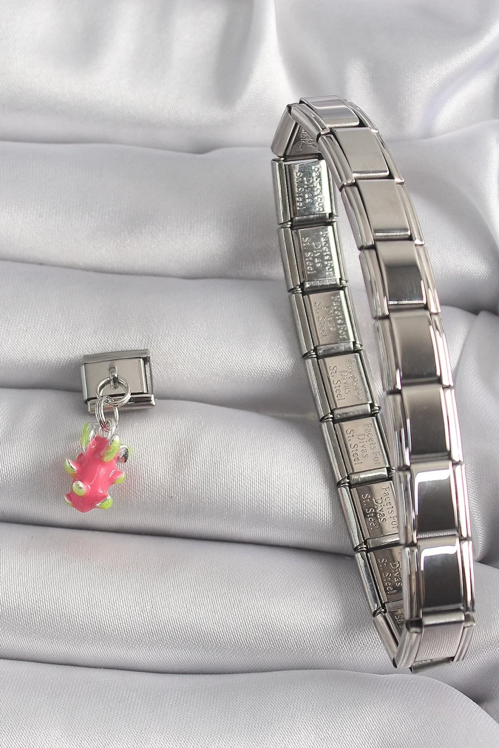 316L Çelik Gümüş Renk Sallantı Ejder Meyvesi Model Nomination Charm