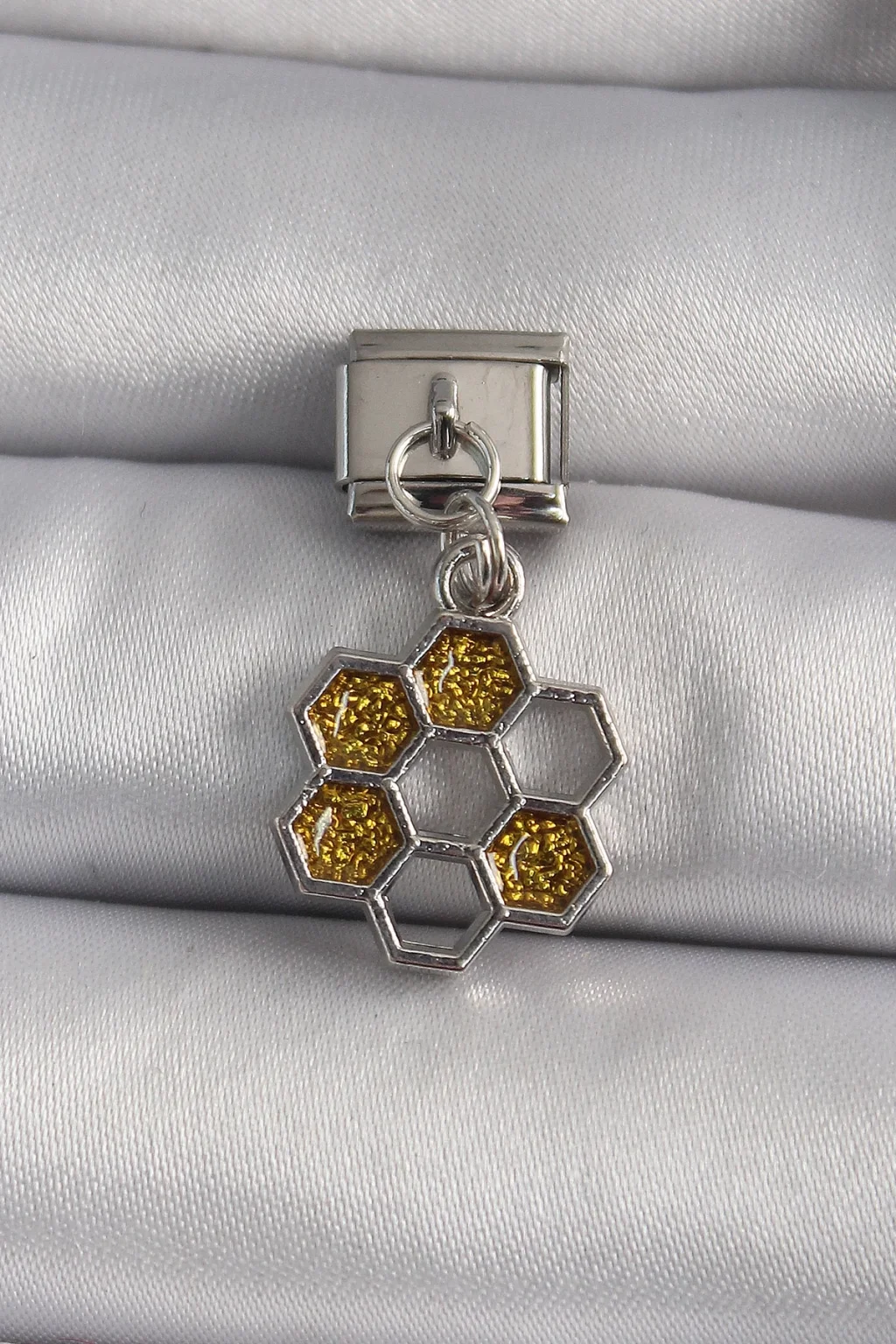 316L Çelik Gümüş Renk Sallantı Simli Bal Beteği Model Nomination Charm