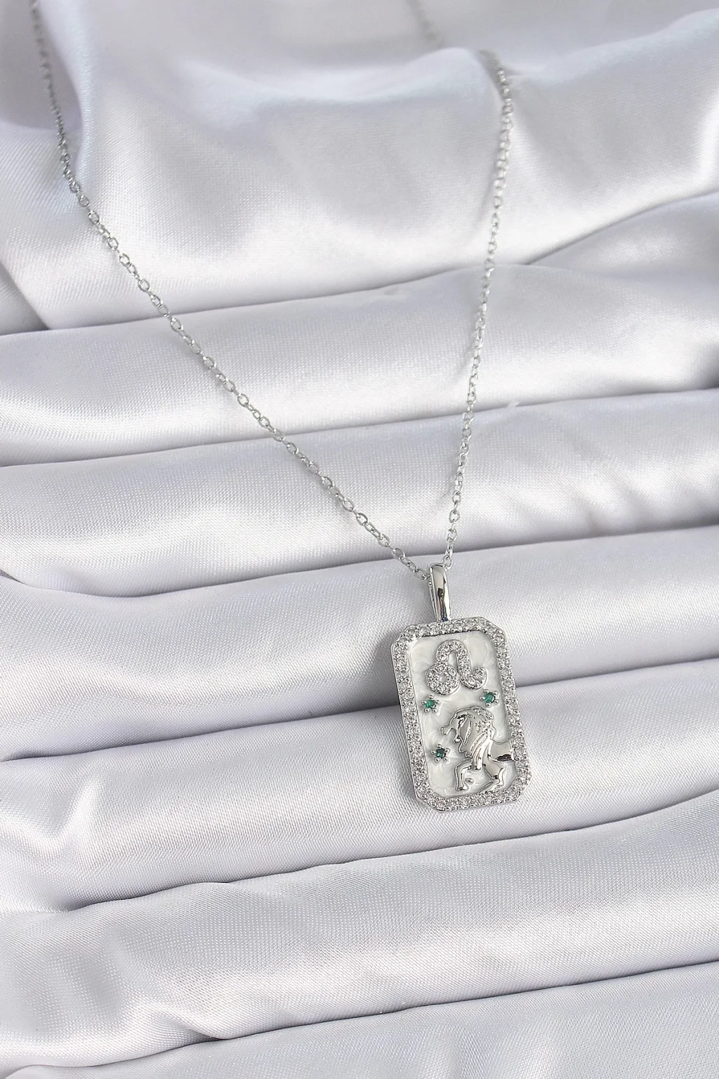 316L Çelik Gümüş Renk Zincir Aslan Burcu Zirkon Taşlı Kadın Kolye