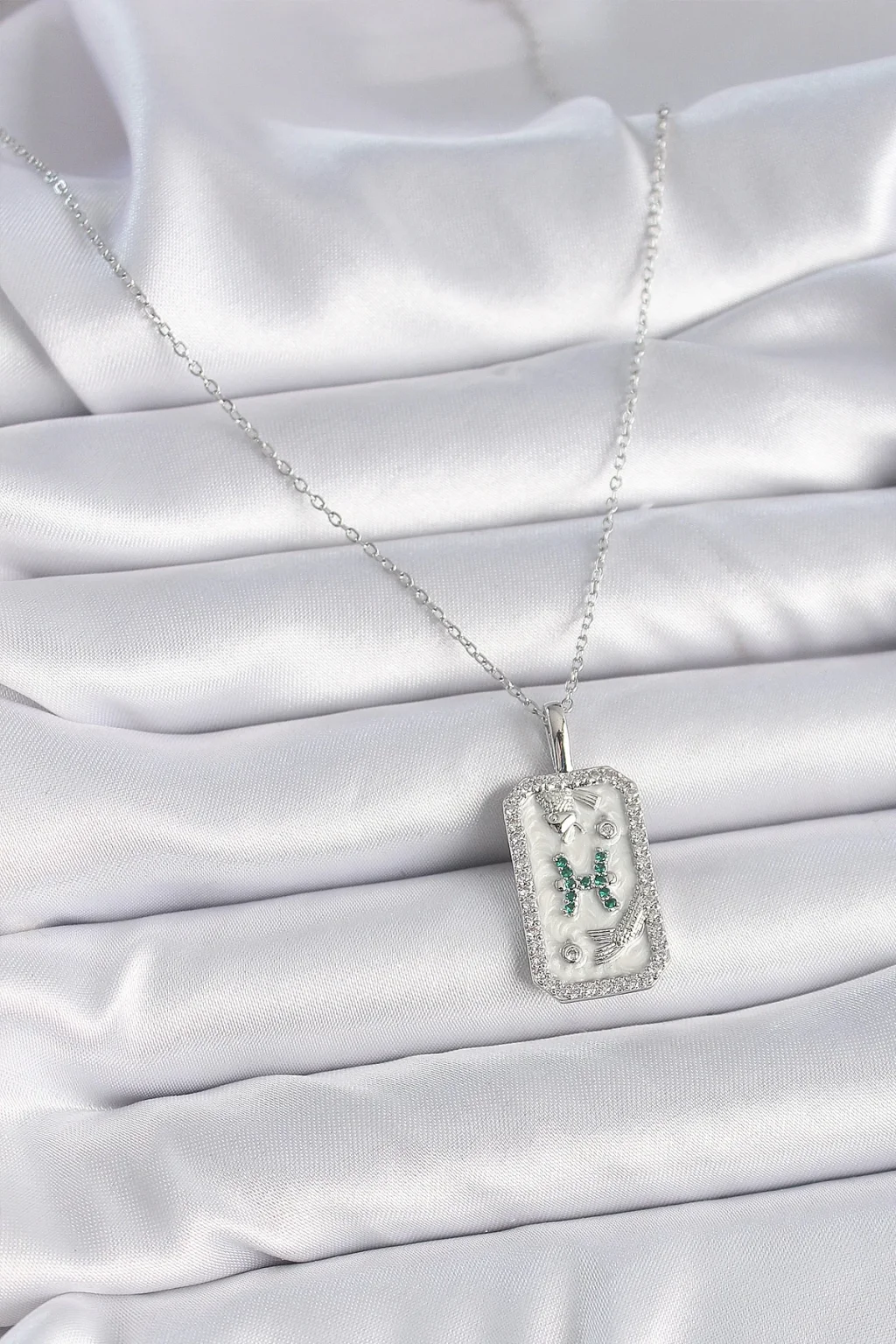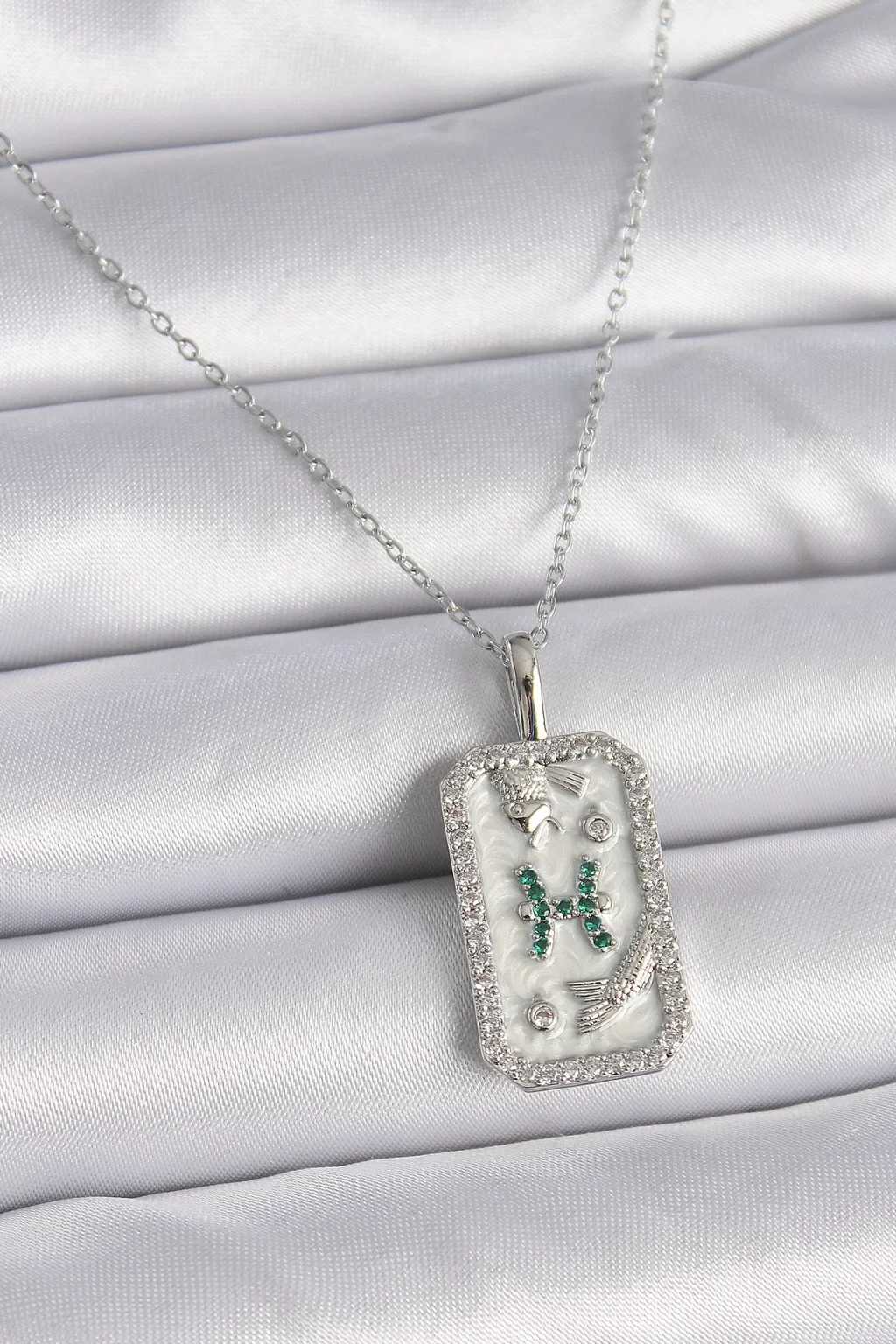 316L Çelik Gümüş Renk Zincir Balık Burcu Zirkon Taşlı Kadın Kolye