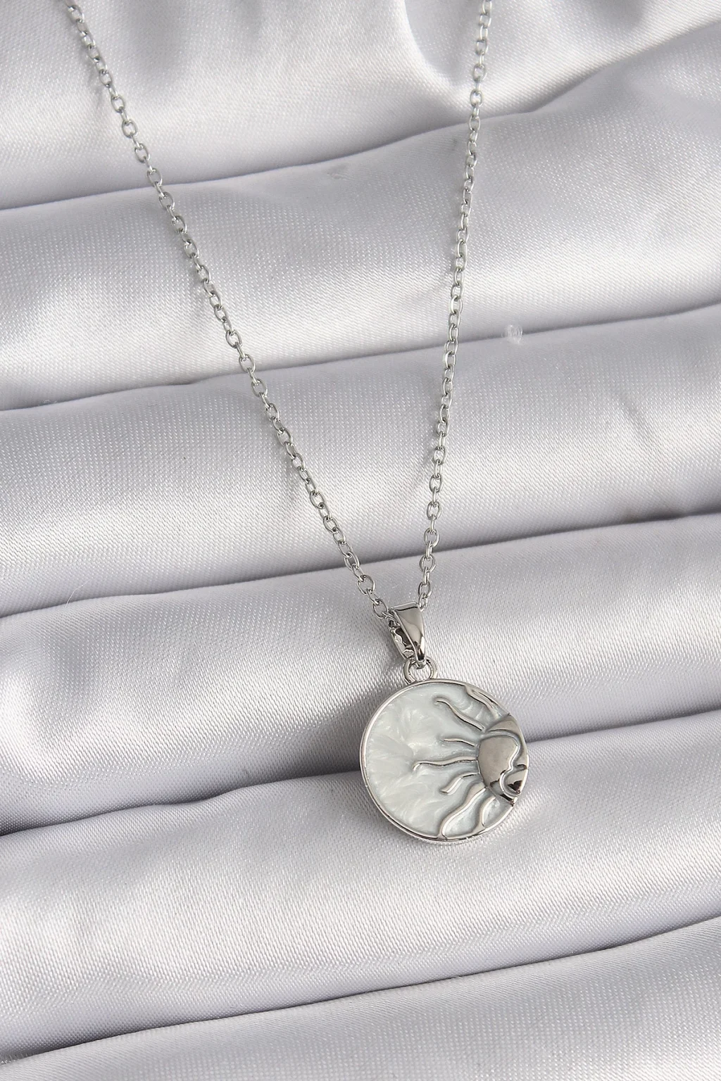 316L Çelik Gümüş Renk Zincir Beyaz Sedefli Gün Batımı Model Kadın Kolye
