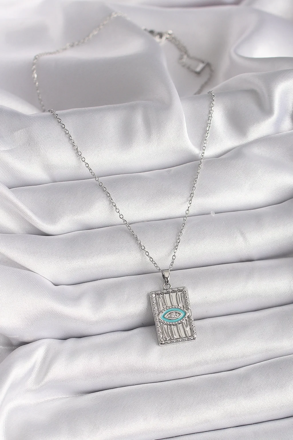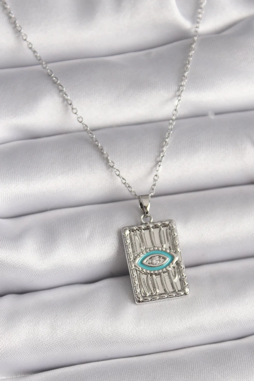 316L Çelik Gümüş Renk Zincir Göz İşlemeli Madalyon Model Kadın Kolye