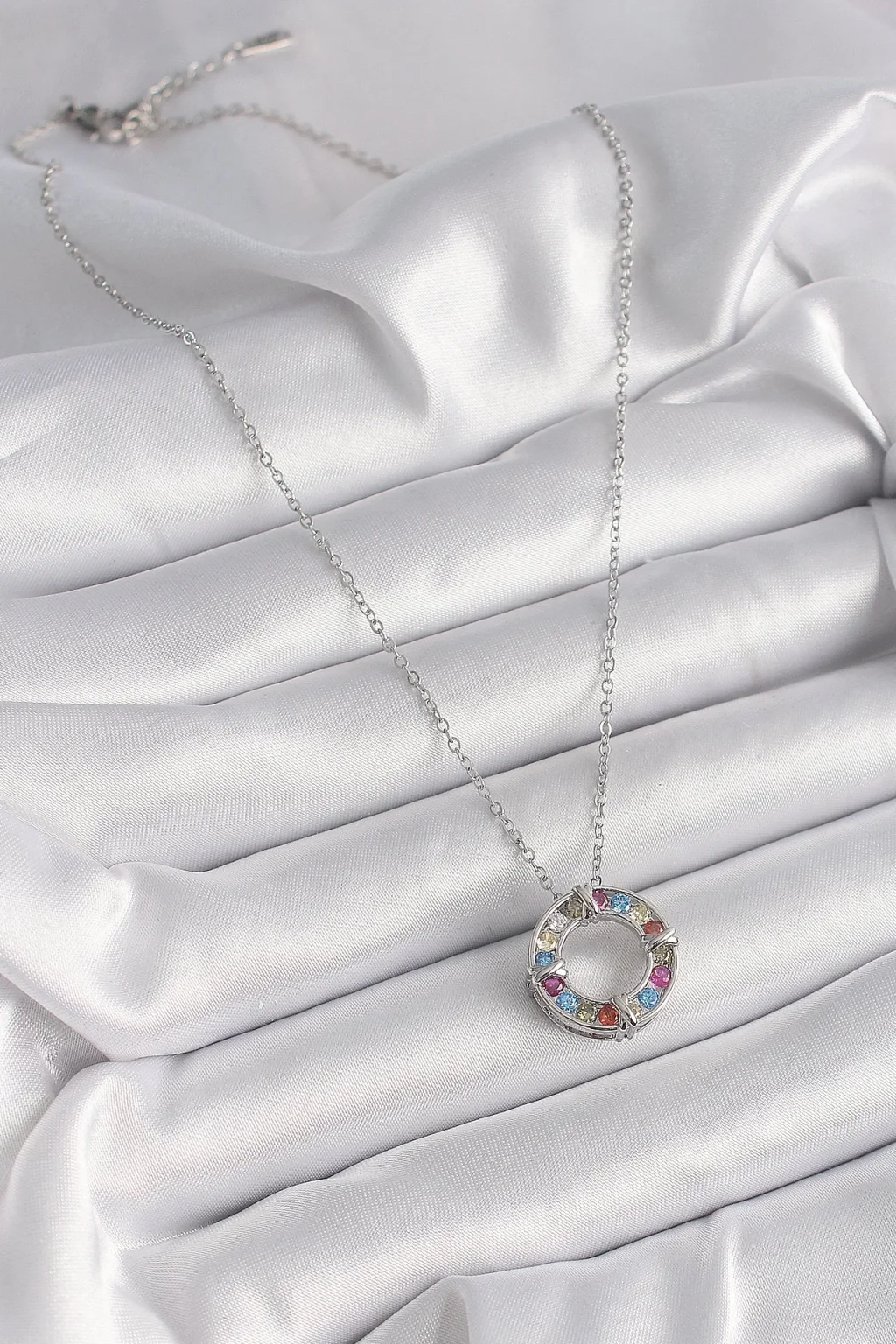 316L Çelik Gümüş Renk Zincir Renkli Zirkon Taşlı Xoxo Model Kadın Kolye