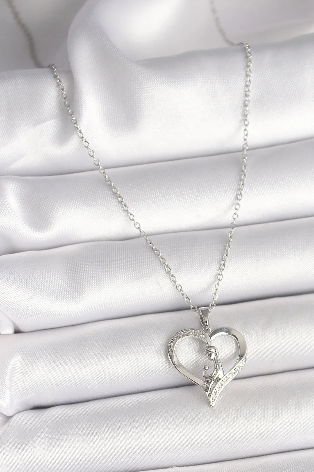 316L Çelik Gümüş Renk Zincir Zirkon Taş Detaylı Kalp Model Kadın Kolye