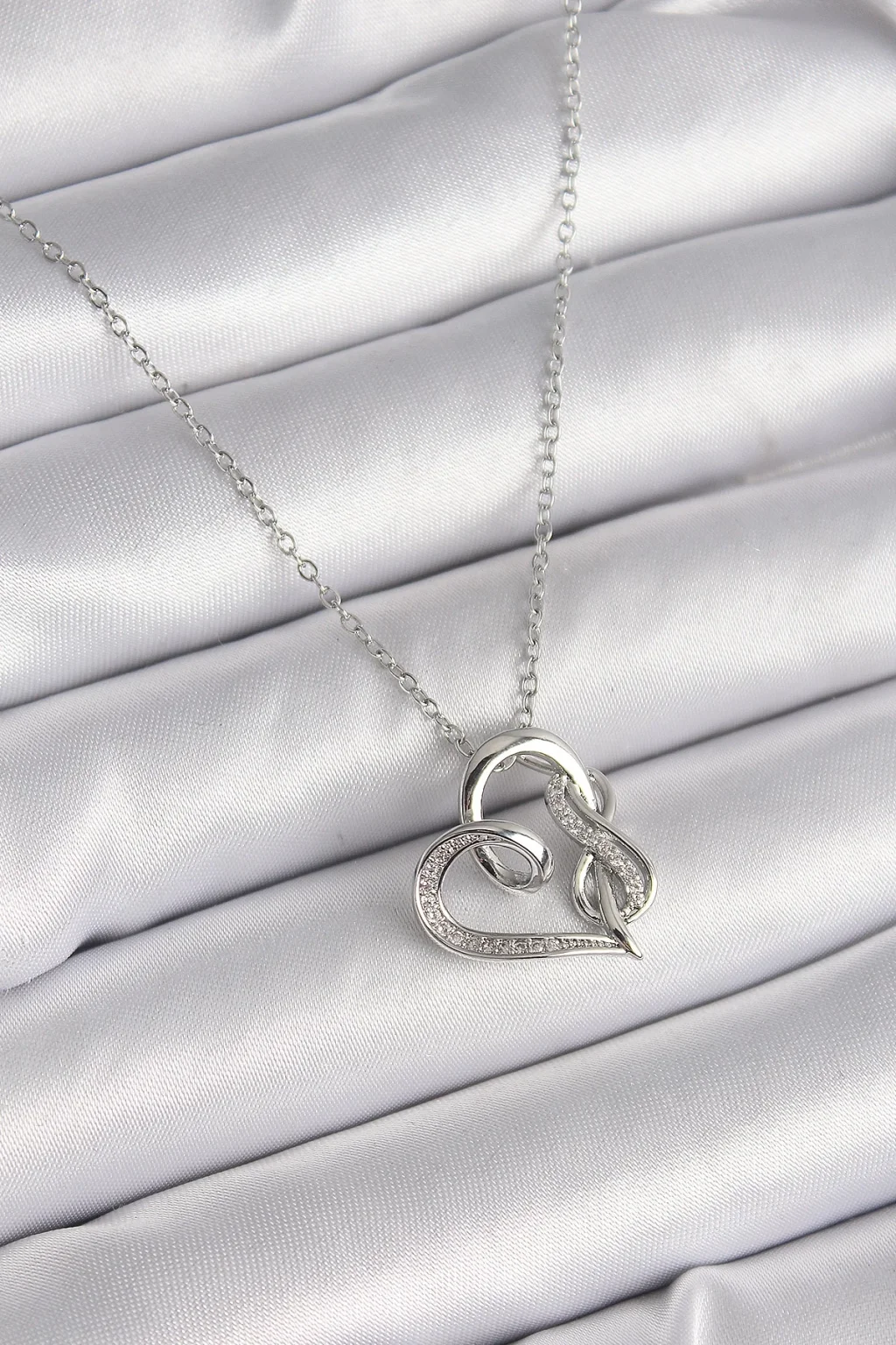 316L Çelik Gümüş Renk Zincir Zirkon Taş Detaylı Kalp Model Sonsuzluk Detay Kadın Kolye