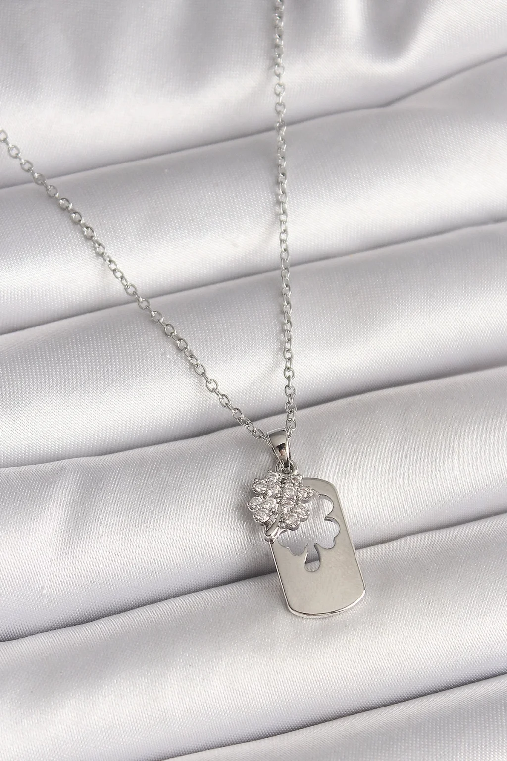316L Çelik Gümüş Renk Zincir Zirkon Taşlı Yonca Model Kadın Kolye