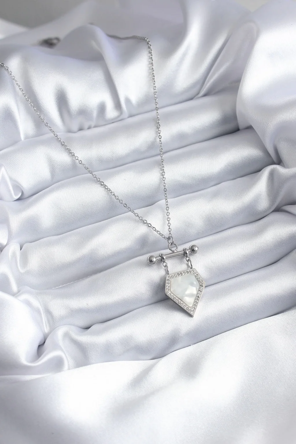 316L Çelik Gümüş Renk Zirkon Taş Detay Kadın Kolye