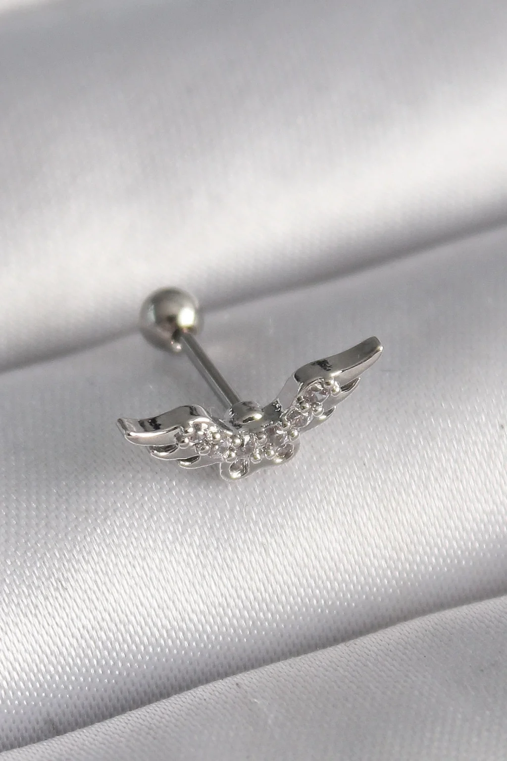 316L Çelik Gümüş Renk Zirkon Taş Detay Kanat Model Tragus Piercing