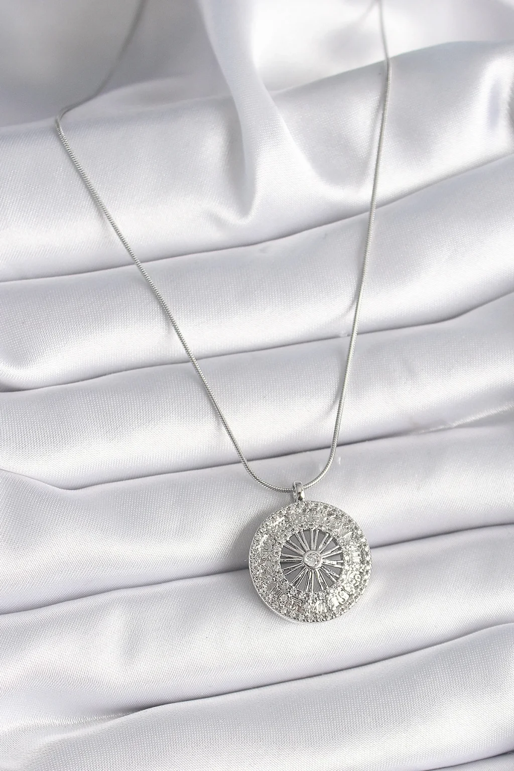 316L Çelik Gümüş Renk Zirkon Taşlı 12 Burç Madalyon Model Kadın Kolye