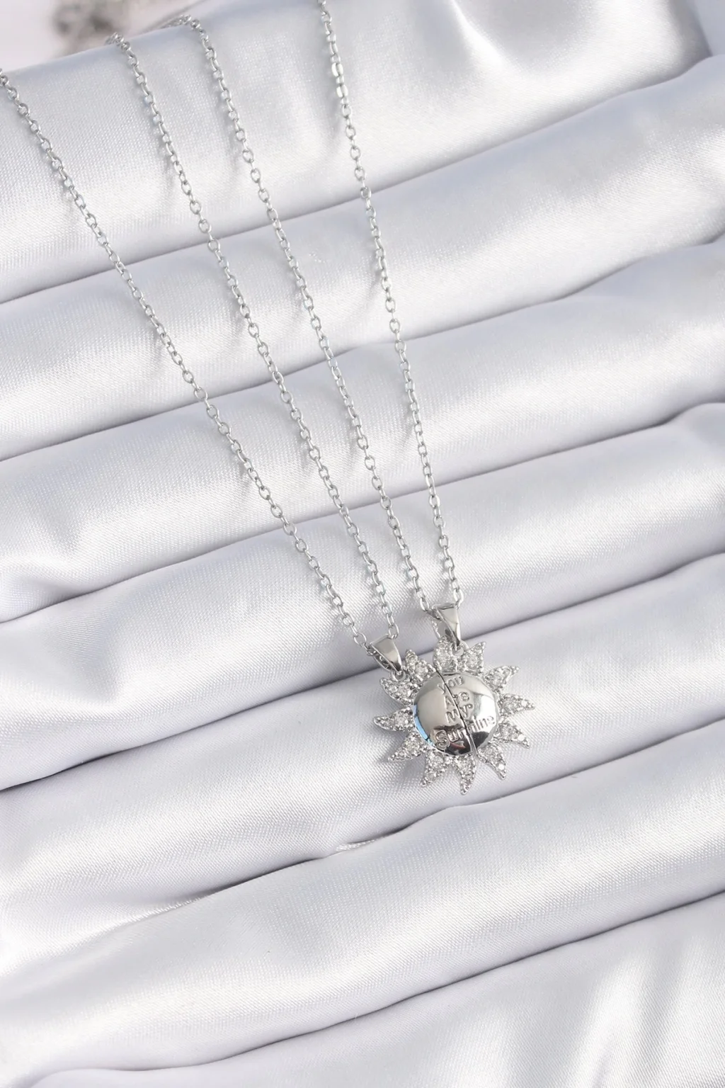 316L Çelik Gümüş Renk Zirkon Taşlı Güneş Model İşleme Yazı Detay Arkadaşlık Kolyesi