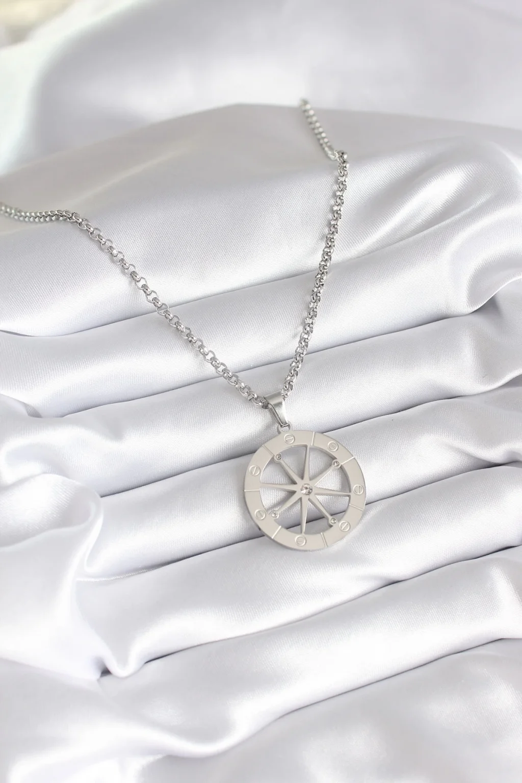 316L Çelik Gümüş Renk Zirkon Taşlı Rüya Kapanı Model İşeme Detay Kadın Kolye