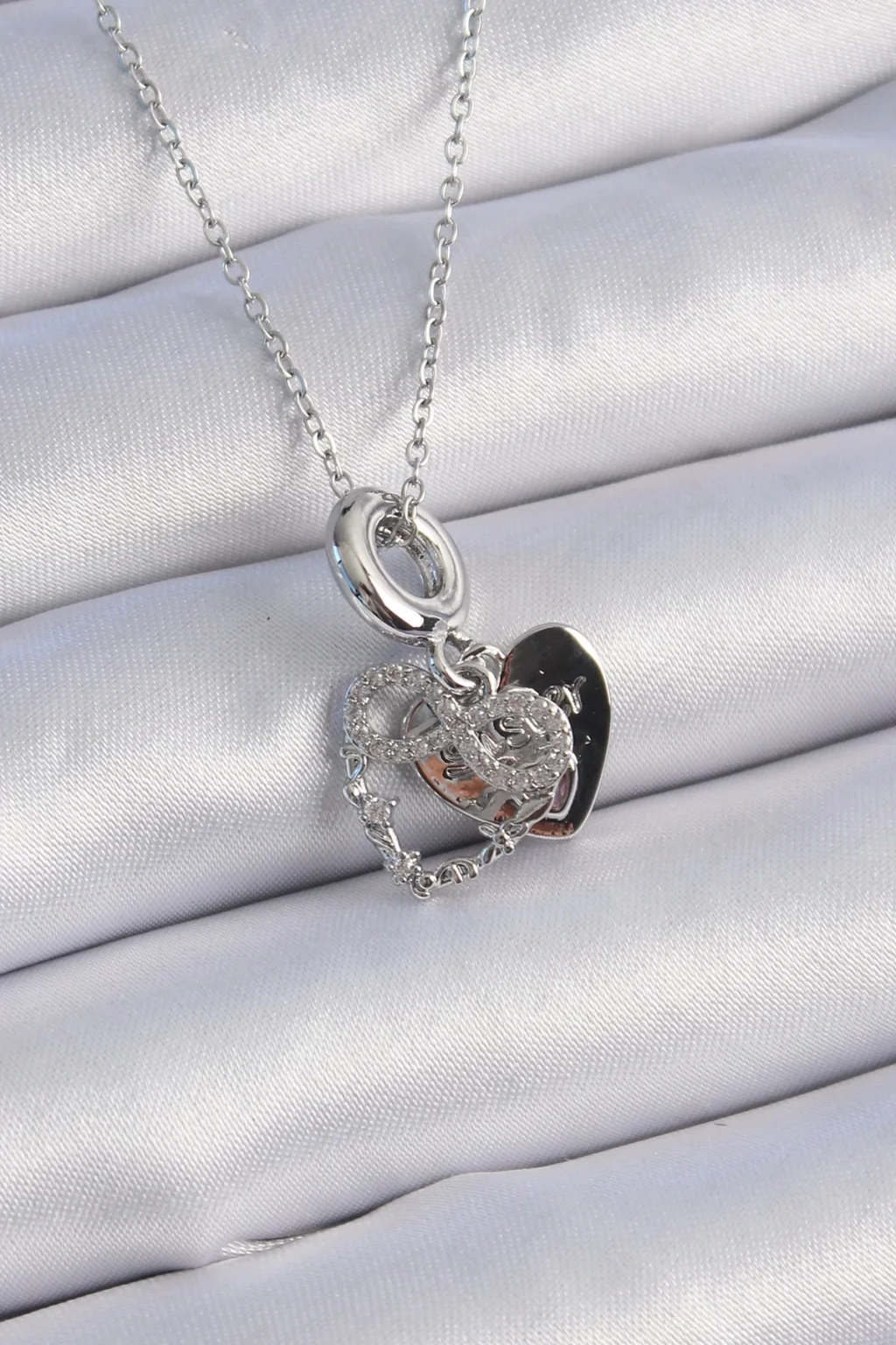 316L Çelik Gümüş Renk Zirkon Taşlı Sonsuzluk Kalp Figür Charm Model Kadın Kolye