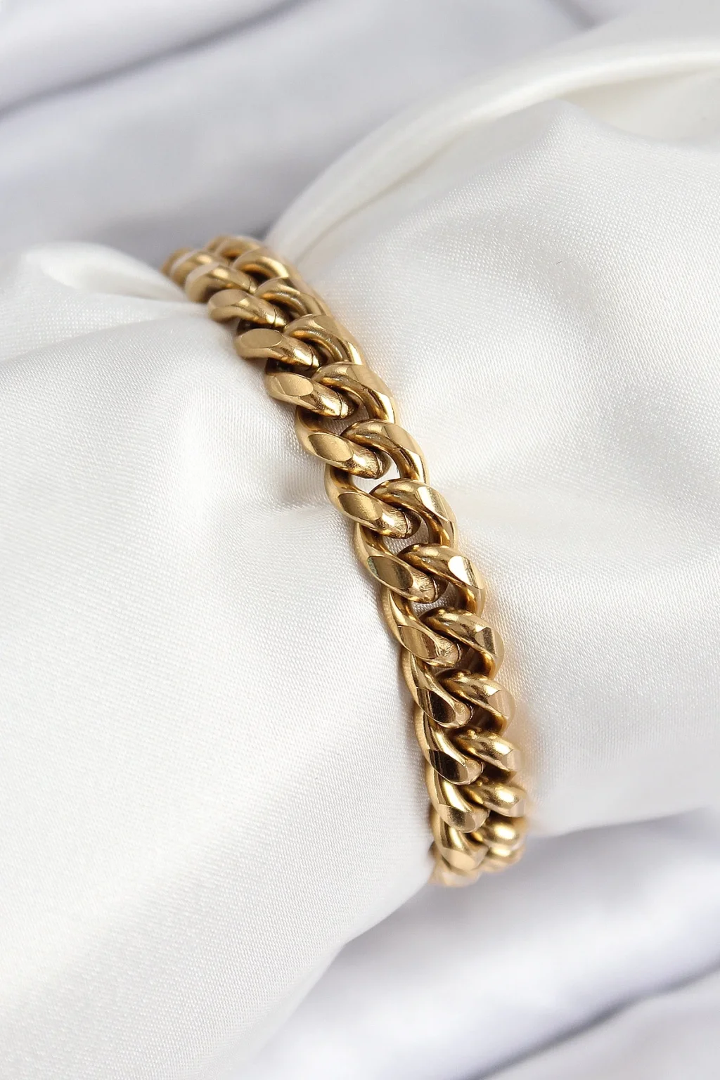 316L Çelik Klasik Kalın Zincir Model Gold Renk Kadın Bileklik