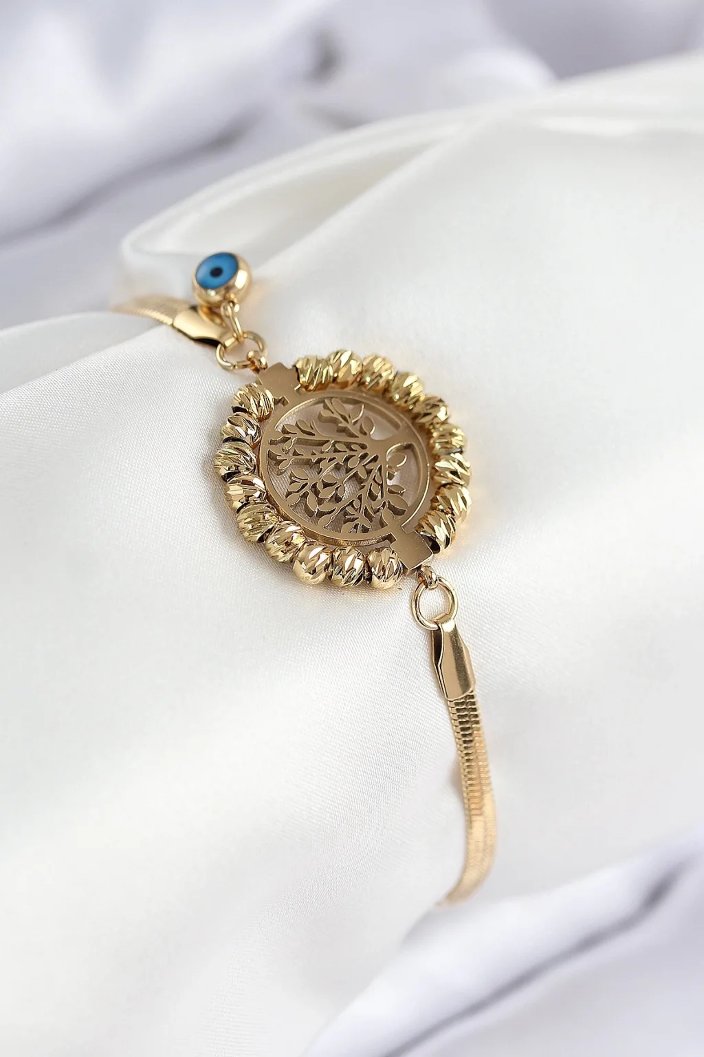 316L Çelik Nazar Boncuk Detaylı Hayat Ağacı Model İtalyan Zincir Gold Renk Kadın Bileklik
